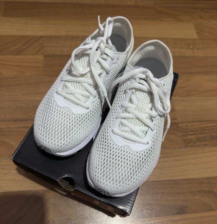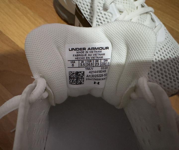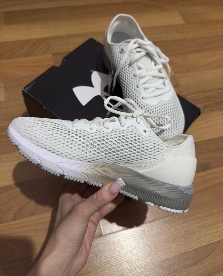 Продаю технологичные и очень легкие кроссовки в белом цвете от Under Armour, ОРИГИНАЛ Производство 2023года (не старые стоки) ❗️На бирке размер 36.5, 23см Модель МАЛОМЕРИТ. На мою стопу 23 см они давят в пальцах. Идеально подойдут на стопу 22-22.5см. На узкую ногу Абсолютно новые, с коробкой и бирками. Надевались один раз для примерки дома Продаю из-за пролета с размером Артикул: 512220