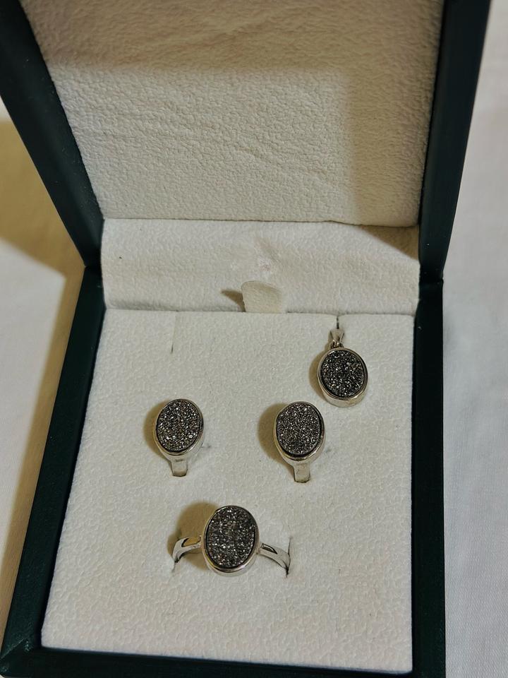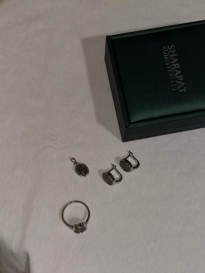 Стильный серебряный комплект 925 пробы набор входят кольцо, серьги и кулон. Состояние отличное,продаются вместе с коробочкой. Размер кольца 18рр Артикул: 512252