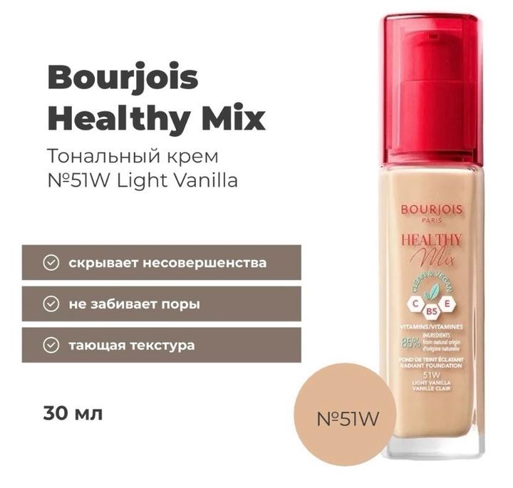Bourjois Healthy Mix тональный крем 51W Light Vanilla. Где-то примерно половина. Срок годности хороший Артикул: 512348