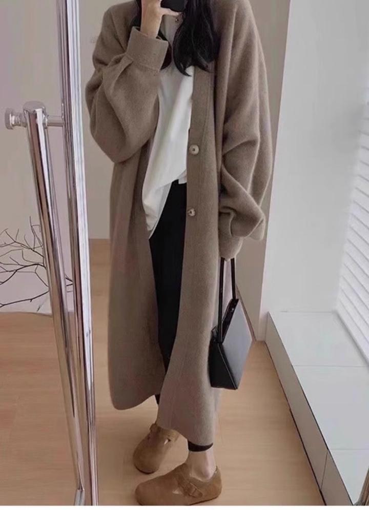 Длинный кардиган Kkuankku Mood c V-образный вырезом от Frederick. В двух оттенках. Новый, free size. Производство Южная Корея. Артикул: 512360