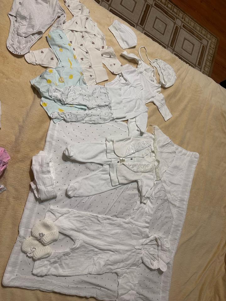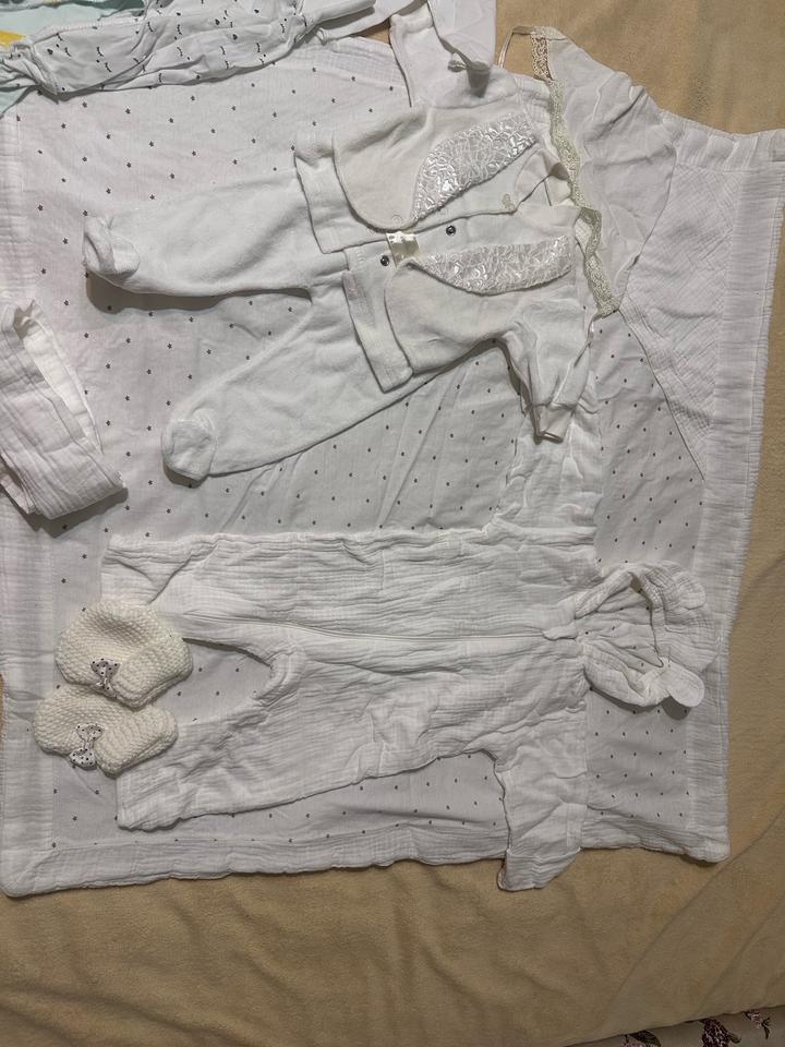 Подходит и мальчику и девочке, весна-лето, белый муслиновый конверт с поясом, и пиньетки есть, шапочки, комбинезон муслин, надели всего по 1-2 раза, без пятен Артикул: 512538