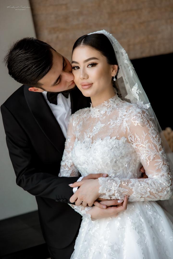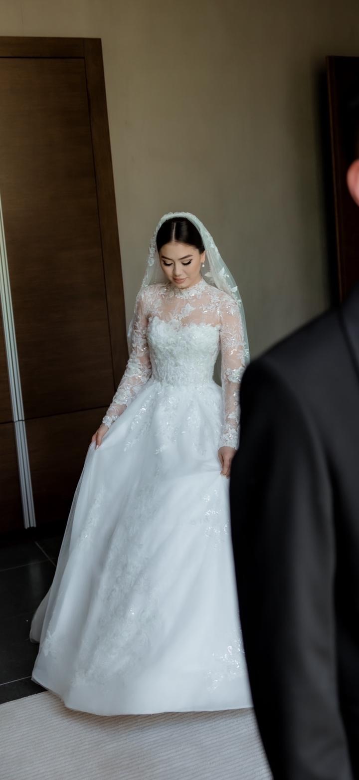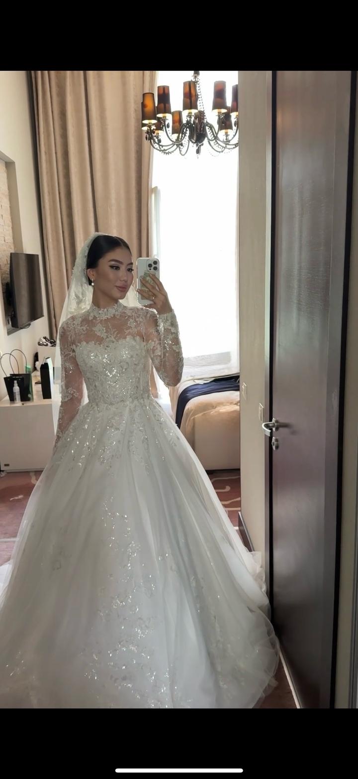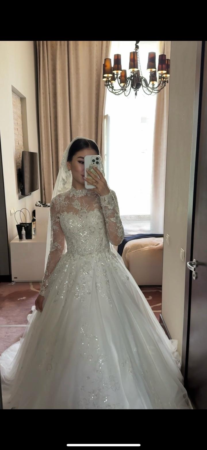 Невероятно нежное и элегантное свадебное платье в классическом стиле Пышная юбка,верх с длинными кружевными рукавами и высоким воротом придаёт образу утончённость и благородство. Платье расшито кружевом и деликатным блеском,красиво переливается на свету ✨ В комплекте: 🤍 Фата 🤍 Кольцо (для пышности юбки) Надевалось один раз на свадьбу,после профессиональной химчистки — полностью готово к следующему выходу. Состояние идеальное. Размер подойдет для S - M Артикул: 512601