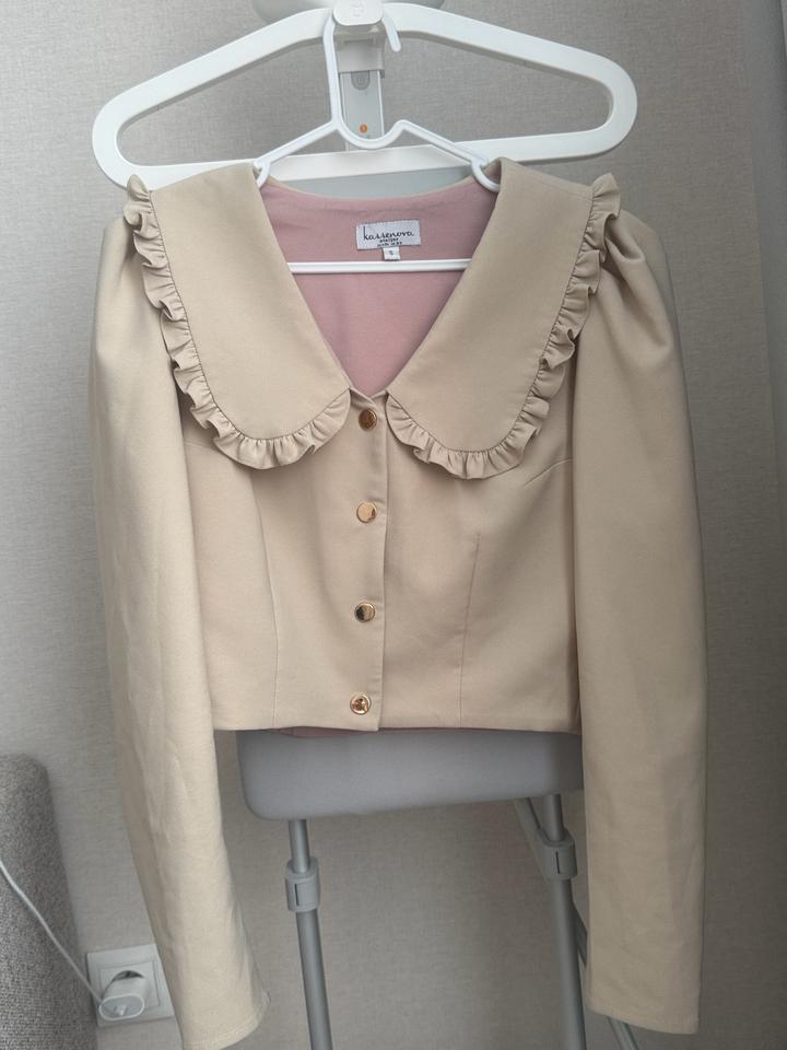 • Размер: S • Состояние: б/у, в хорошем состоянии • Цвет: бежевый • Детали: декоративный воротник с рюшами, длинный рукав, пуговицы спереди Лёгкая и элегантная вещь, которая легко сочетается с юбками, брюками и джинсами 👍 Артикул: 512677