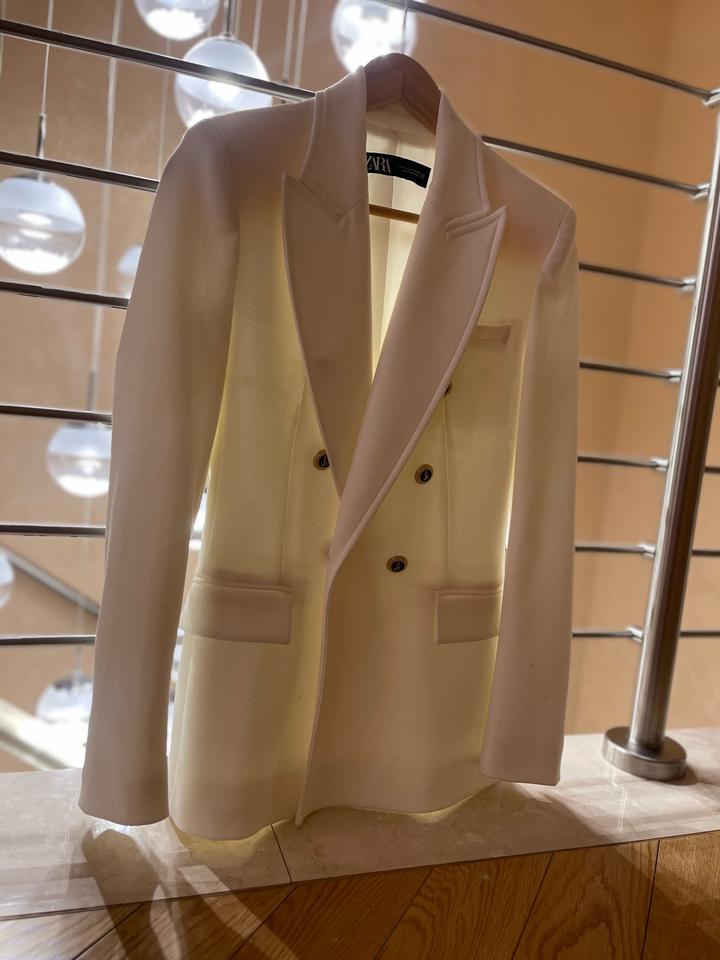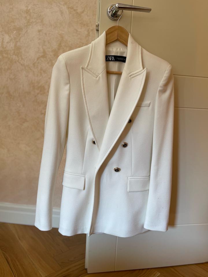 Белый блейзер бренда Zara. Размер XS. Практически новый. Красивая приталенная посадка. Артикул: 512688