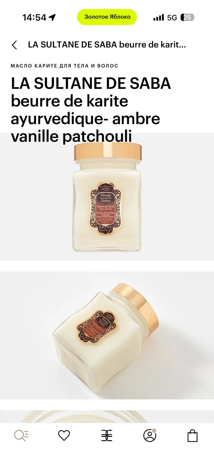 Масло для тела и волос LA SULTANE DE SABA beurre de karite ayurvedique- ambre vanille patchouli Один раз в использовании Покупала за 47 000 тенге в Золотом Яблоке Артикул: 512831