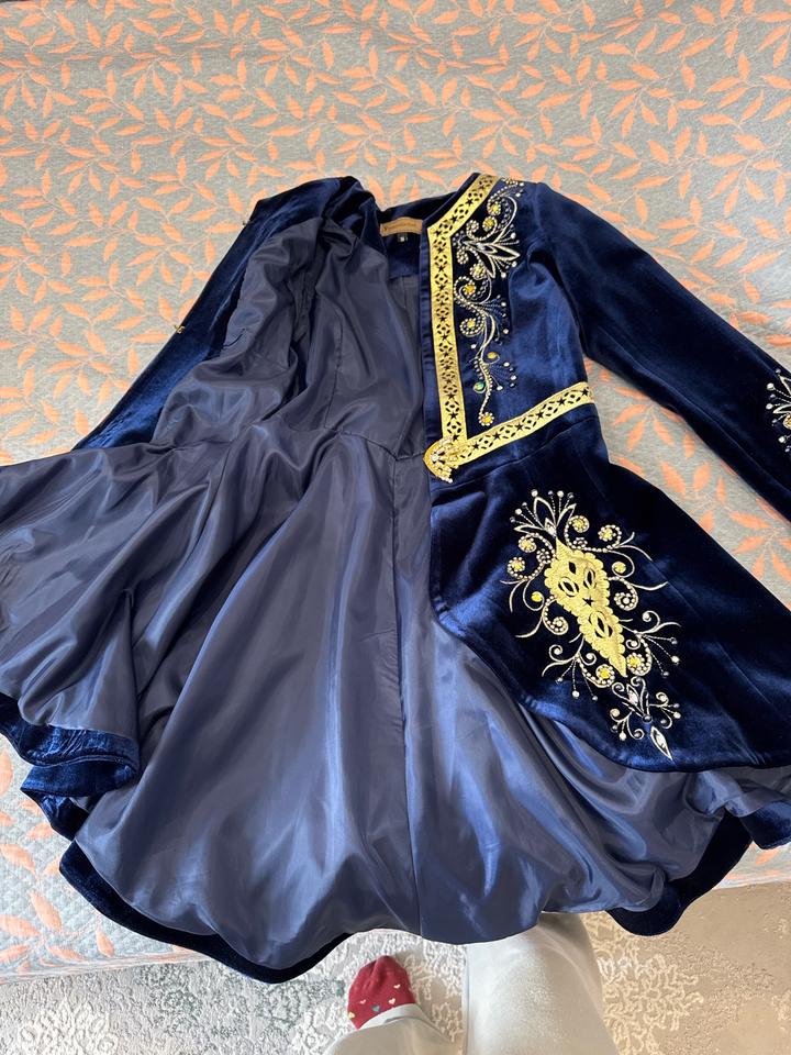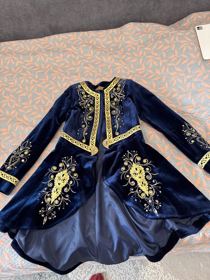 Продается национальный кажекей синего цвета в хорошем состоянии. Б/у , было одето 2-3 раза. Продаю потому что размер уже не подходит. Размер S. Длина 85 см. Смотрится богато и красиво. Артикул: 512904