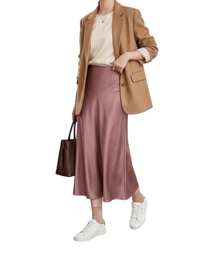 Атласная юбка цвет пыльная РозаM