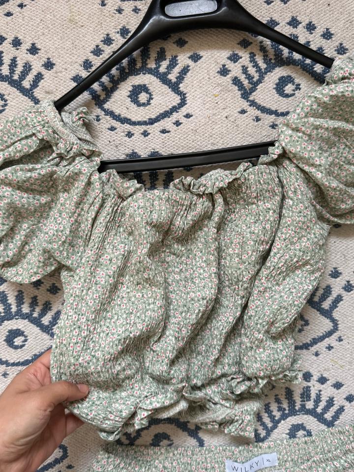 Супер мягкая двойка. Хлопок 100% 🙏🏻 Покупала в Wilky в 2020 - 21 году и с тех пор носила только 1 раз. Стирка только бережный/деликатный режим Вверх S-M, юбка не знаю почему написано XL, можно регулировать и вроде S - M. Артикул: 513005