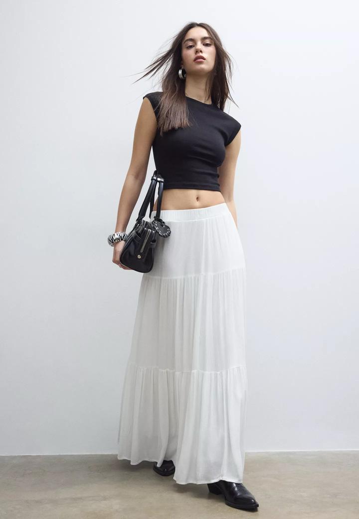 белая ярусная юбка макси StradivariusS/M
