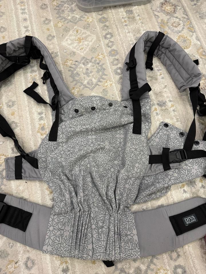 Эргорюкзак Diva Milano с рождения. Это настоящий слинг-рюкзак, который обеспечивает правильное положение ребёнка при ношении. Ребёнок в нём не сидит, это важно. Рюкзак из премиальной серии Diva Milano из настоящей «слинговой» тканой ткани. Плотный натуральный хлопок, не деформируется. Красивый серебристый цвет. Подойдёт и для мальчиков, и для девочек. Очень классно разгружает спину. Я гуляла долго и в верхней одежде на улице, и дома - везде удобно. Состояние идеальное 👌 Артикул: 513197