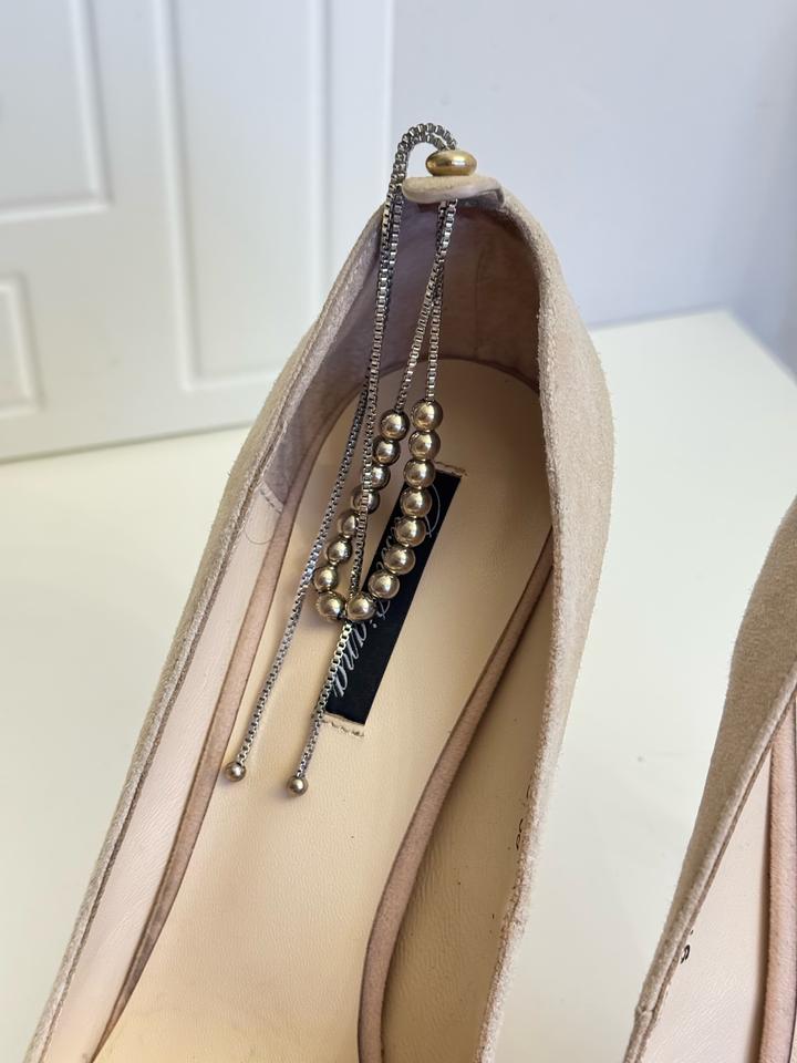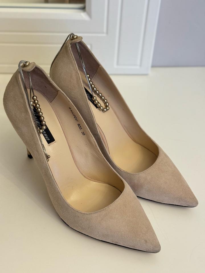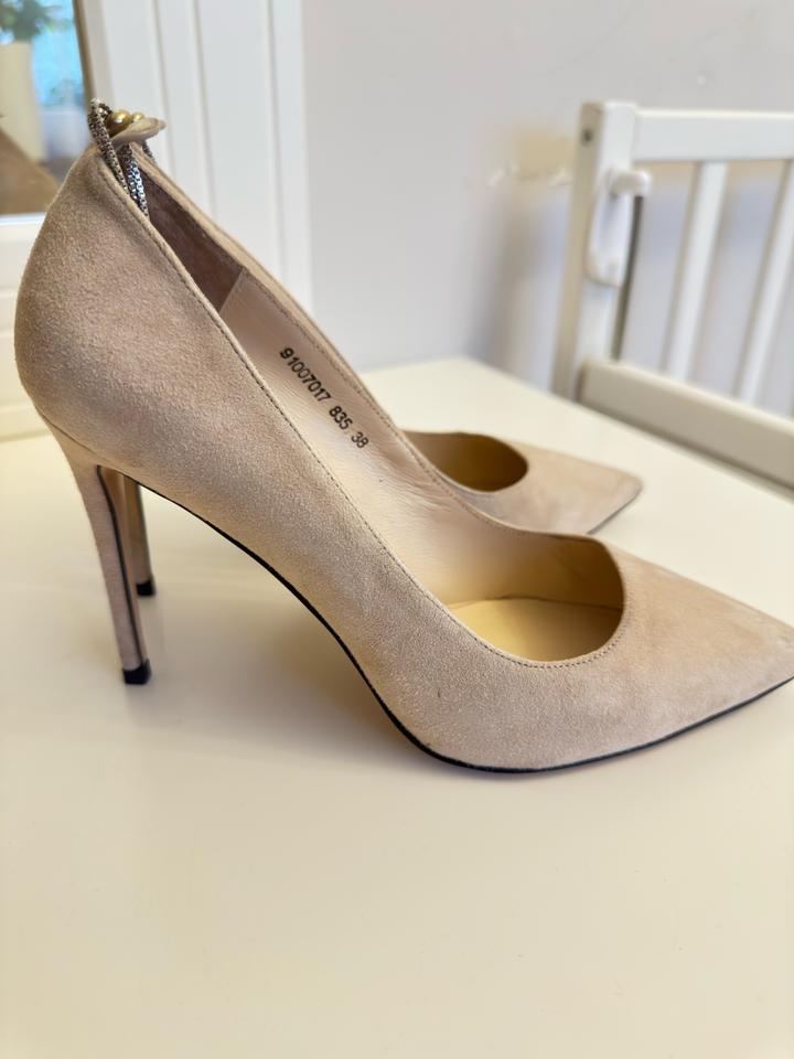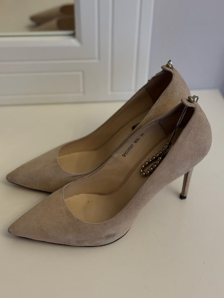 Туфли в идеальном состоянии, носила на свадьбу один раз, натуральная замша, устойчивый каблук, есть запаски и фирменная коробка, на фото видно грязные места по желанию можете отдать в химчистку, цвет: пудра Артикул: 513216