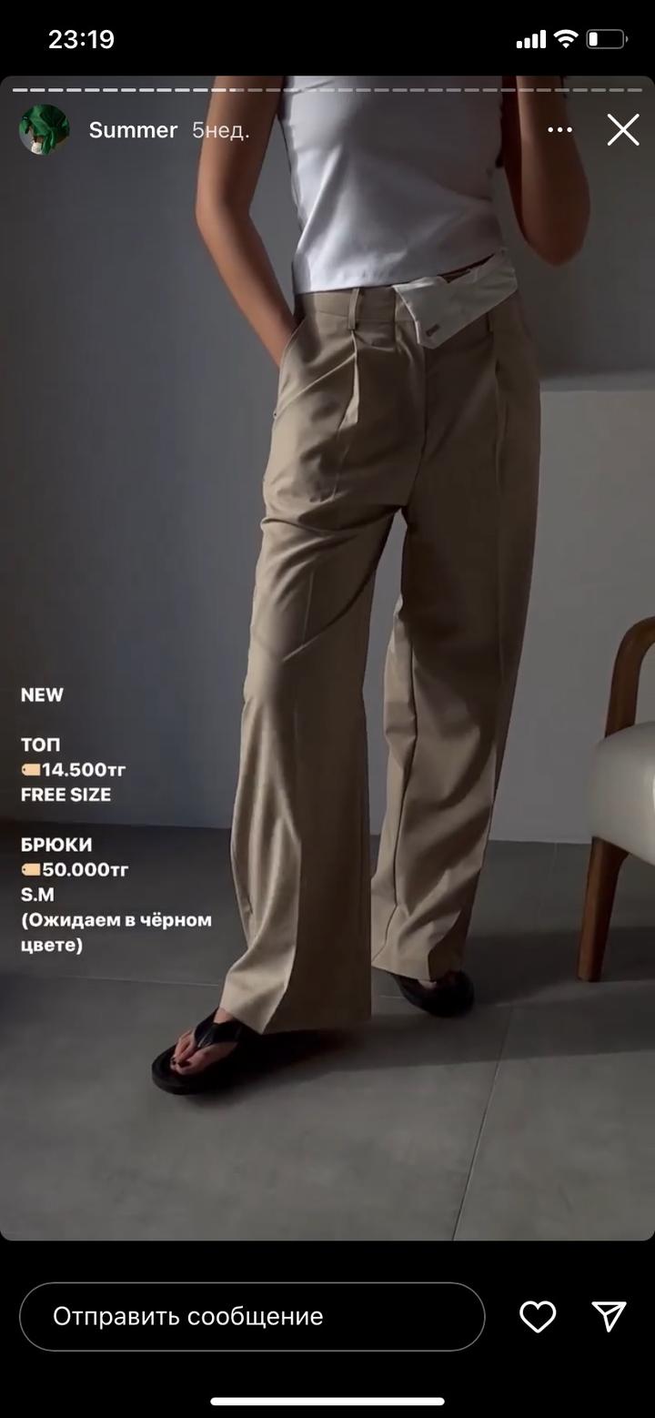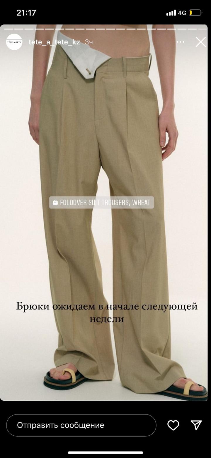 Тонкие брюки в бежевом цвете корейского бренда beside_you в размере M Артикул: 513350