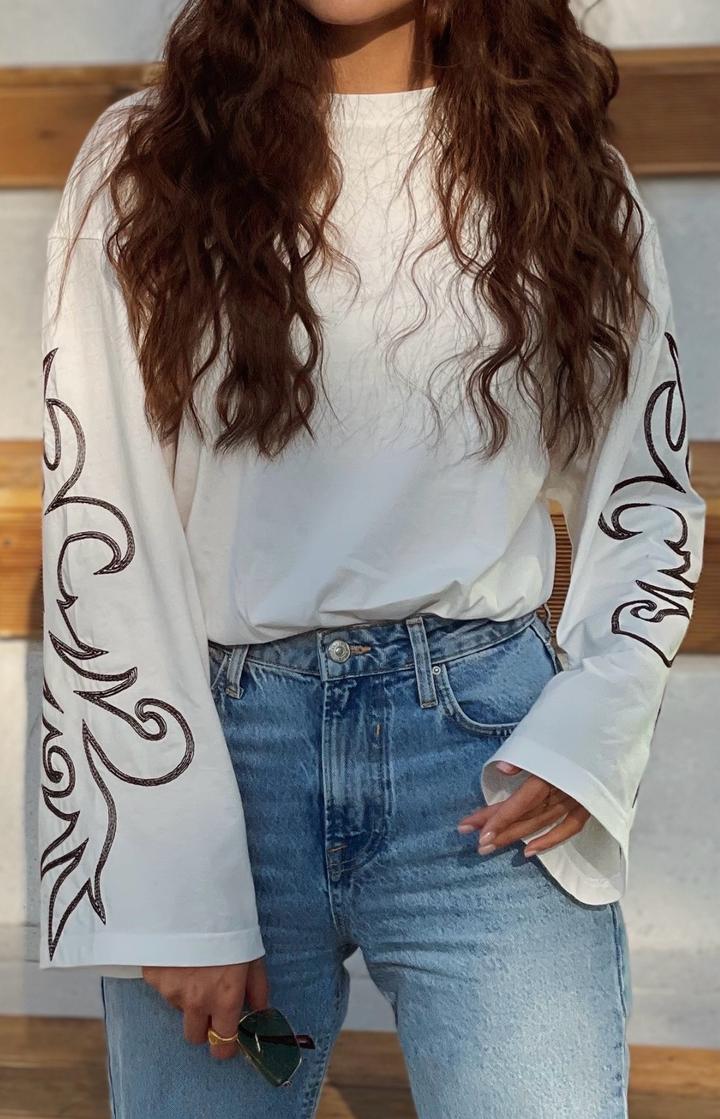 В хорошем состоянии, хлопок. Размер М, оверсайз. На спине и рукавах вышивка орнаментом Артикул: 513602