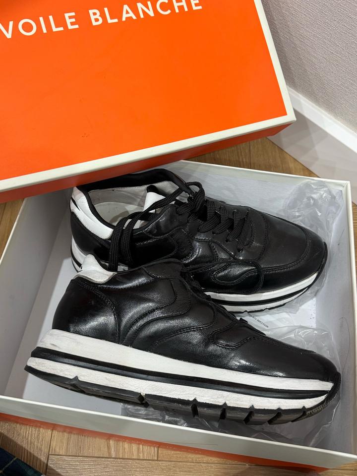 Стильные кроссовки Voile Blanche 🤍🖤 Размер: 39 Бренд: Voile Blanche (Италия 🇮🇹) Состояние: хорошее, аккуратно носились Материал: натуральная кожа Очень удобные и легкие, отлично сидят на ноге 👟 Подойдут под любой образ — как повседневный, так и более стильный ✨ Артикул: 513814