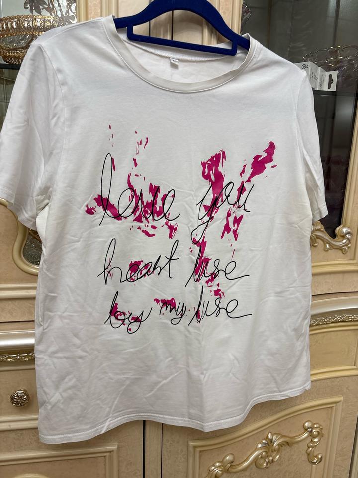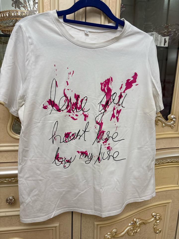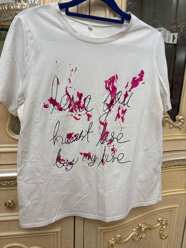 Белая футболка с надписями и розовыми брызгами Артикул: 513855