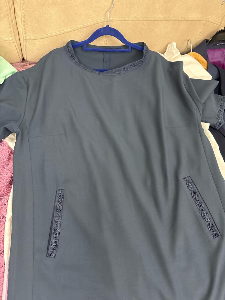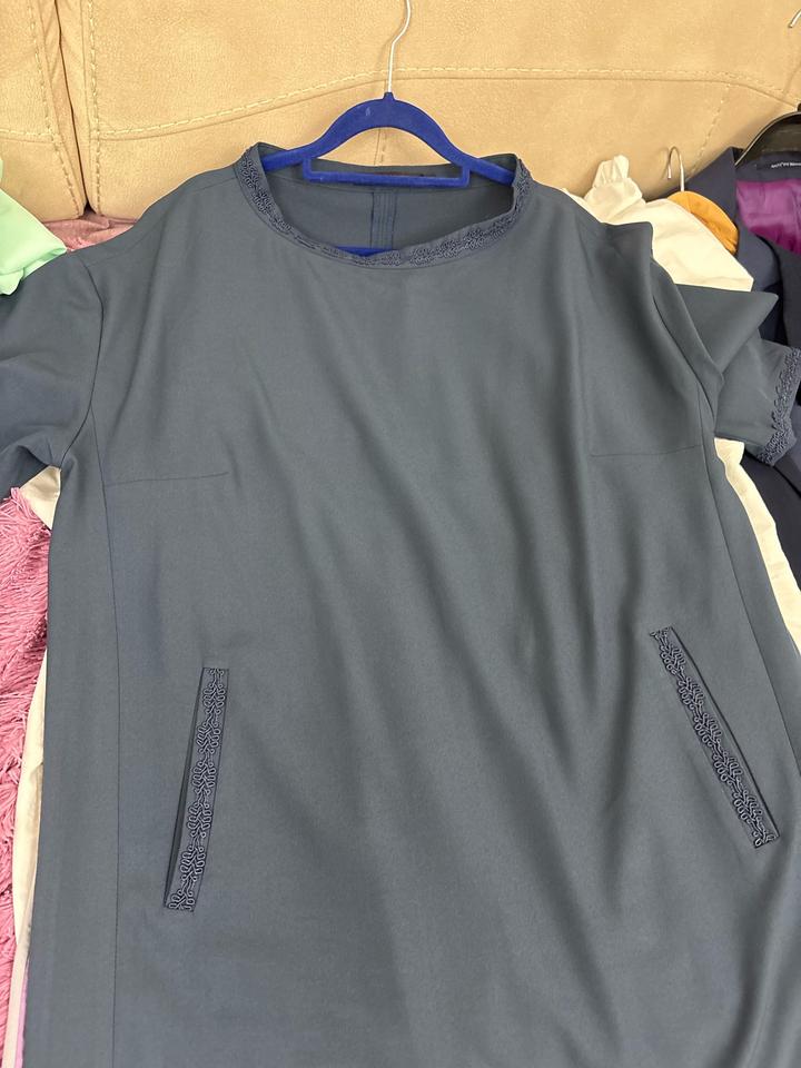 Темно синие плтаье с карманами длины чуть ниже колена Артикул: 513877