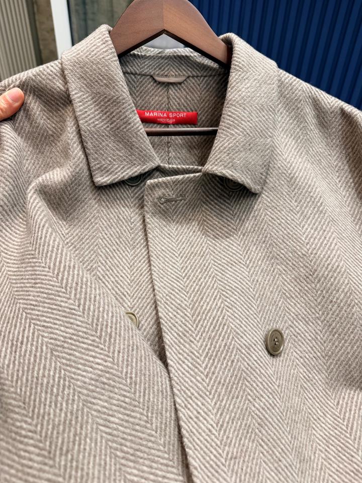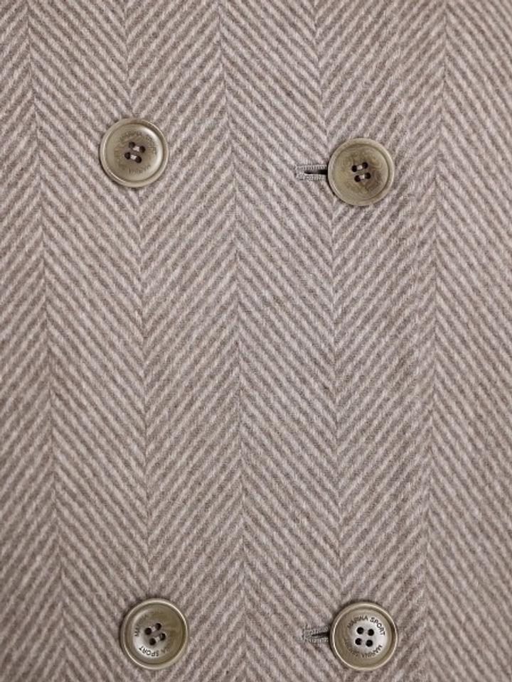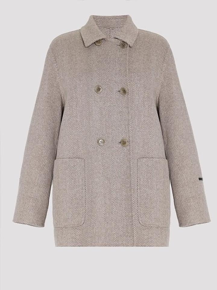 Пальто короткое от Marina Rinaldi Sport, холодно-бежевого цвета (тауп) с легкой фактурой шерсти. Стильное двубортное пальто с классическим воротником и карманами. Подкладка на рукавах из 100% полиэстера обеспечивает комфорт и тепло. Состав: 90% шерсть, 10% полиамид. Размер 56/58, легкое и теплое. Покупала в магазине Max Mara в Алматы, продаю так как стало большое. Артикул: 513920