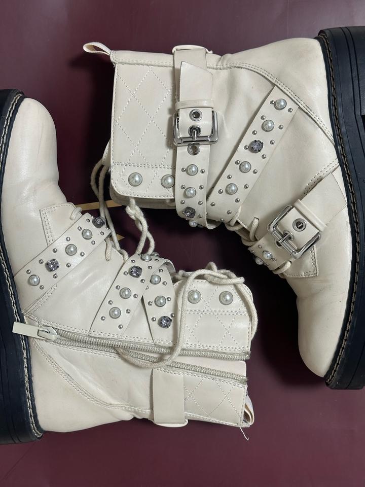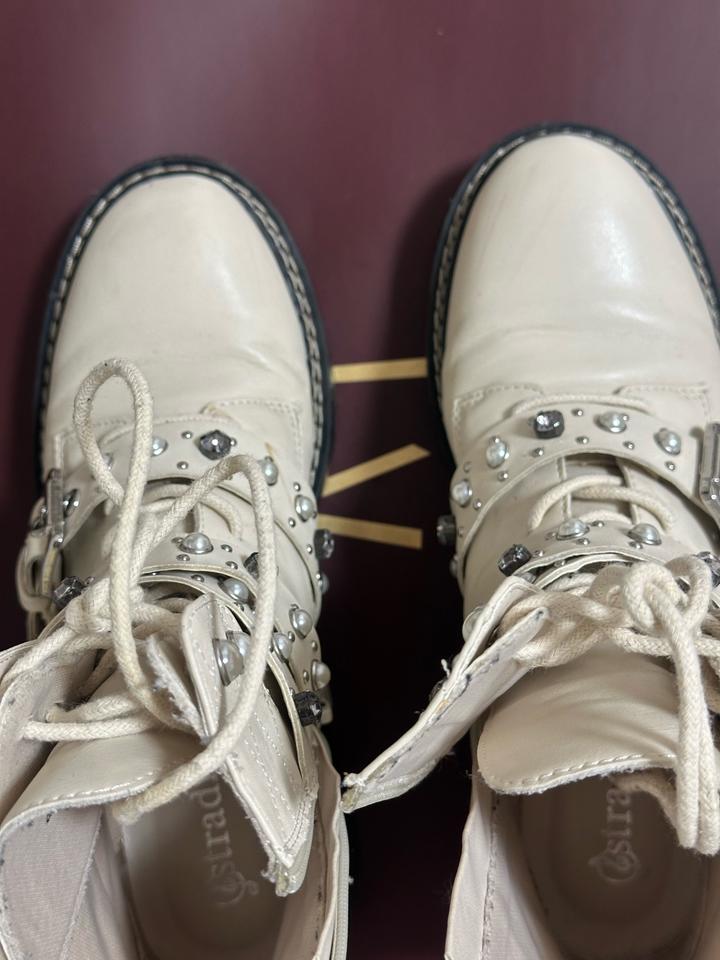 Ботинки с декором. В отличном состоянии, одевались пару раз. Есть замок и шнурки. Артикул: 513927