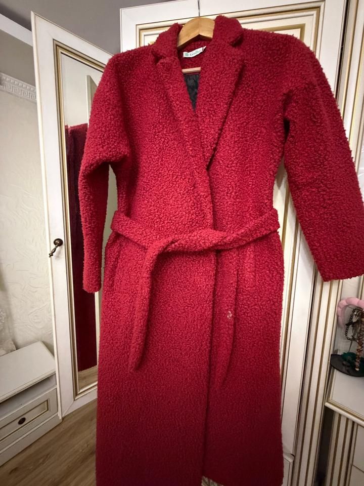 Бордовое пальто длинное с ремнем . Размер М , подойдет и на Л. Артикул: 513987