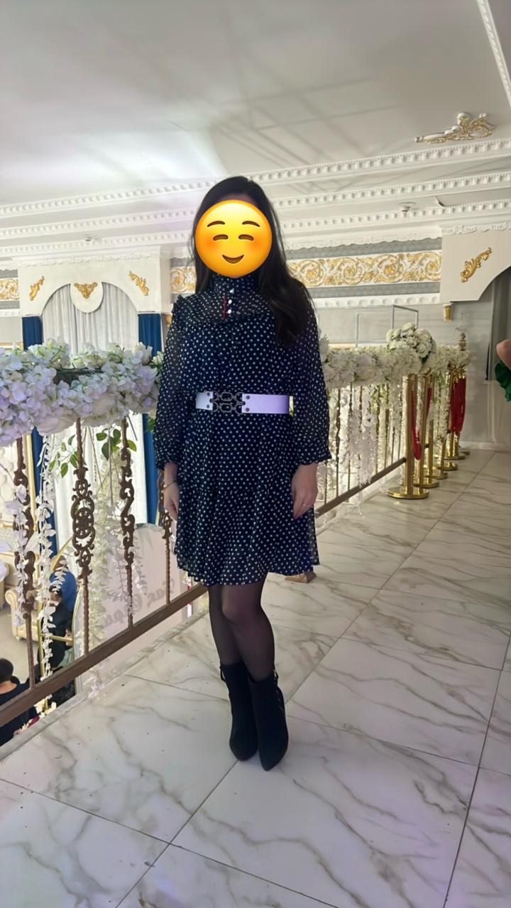 Платье в горошек с белым ремешком Размер 42 С Материал очень приятный к телу Рукава 3/4 Длина выше колен Носила 2 раза Артикул: 514075