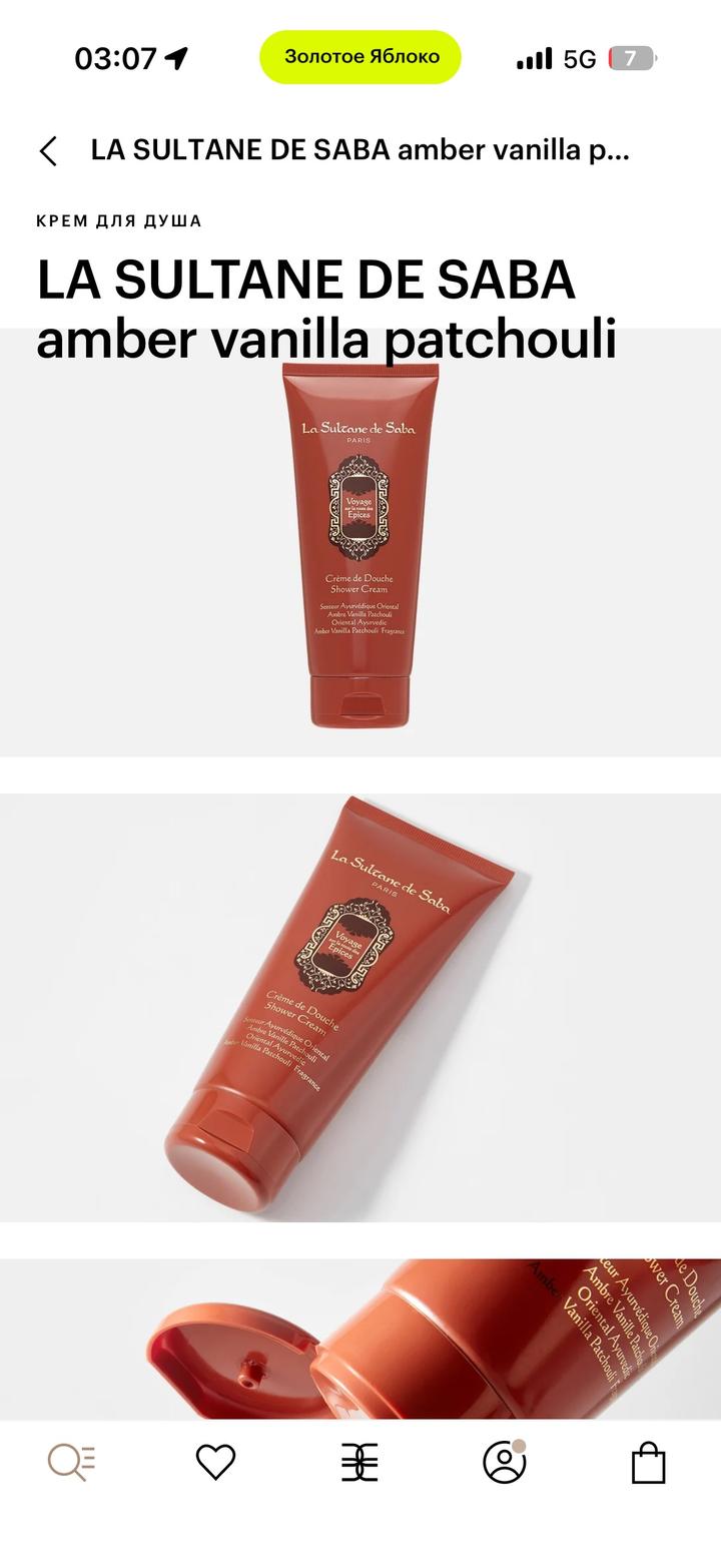 Крем для душа LA SULTANE DE SABA amber vanilla patchouli 200 мл В использовании 1 раз Крем для душа La Sultane de Saba дарит коже мягкость, увлажнение, способствует гармонизации тела и души. Экстракты алоэ вера, мёда и лотоса смягчают, тонизируют и повышают упругость кожи, а полупрозрачная текстура крема при контакте с водой превращается в нежное молочко, эффективно очищая и увлажняя. La Sultane de Saba — это ремесленный французский бренд, в основе которого уникальные парфюмерные компо Артикул: 514126