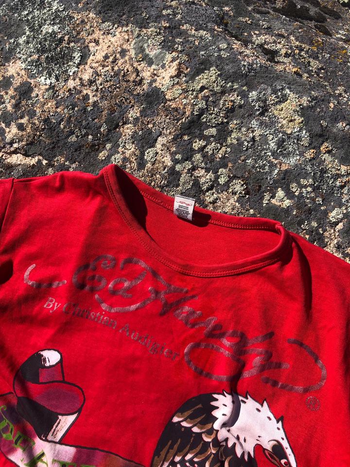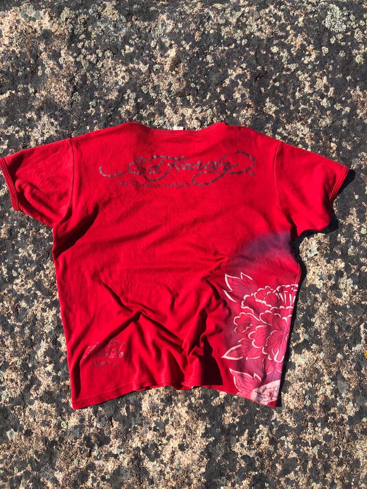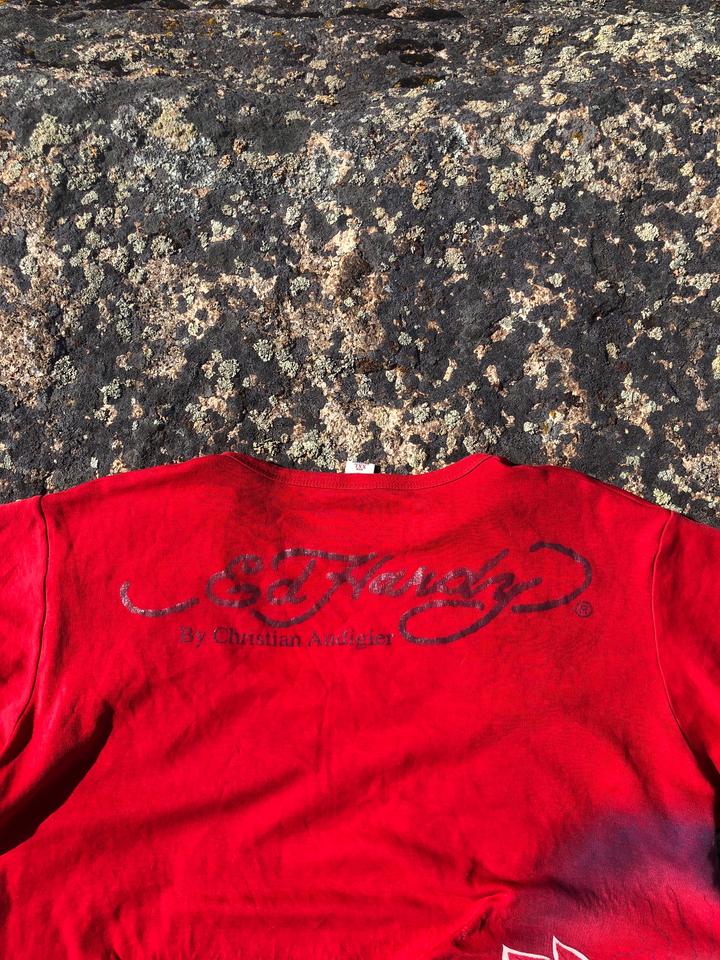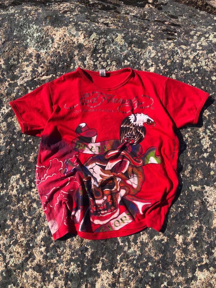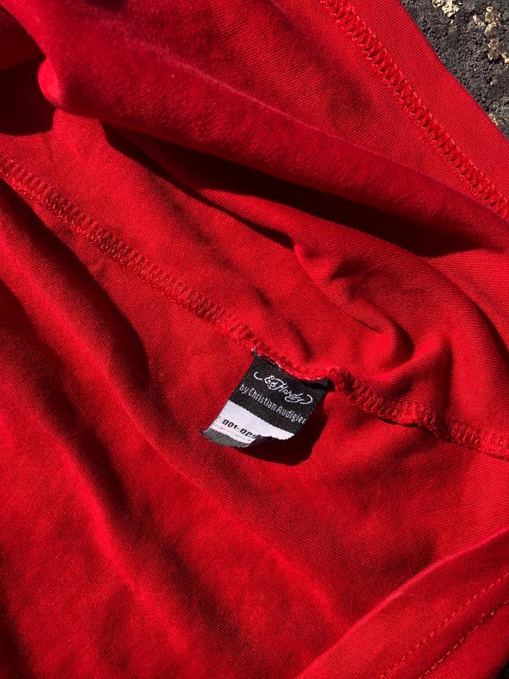 Ed Hardy — классика 2000-х: красная футболка oversize с черепом, орлом и пионами. Размер XL, состояние хорошее (лёгкие следы носки, принт яркий, без дыр/пятен). Культовая вещь для фанатов стиля. 13 500 тг. Артикул: 514187
