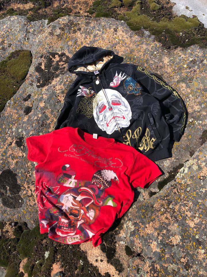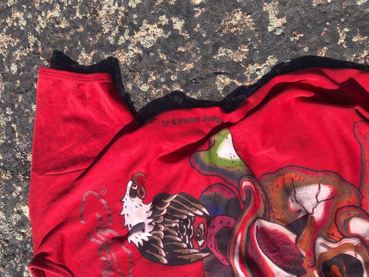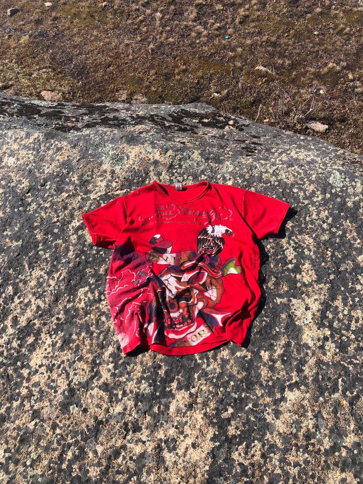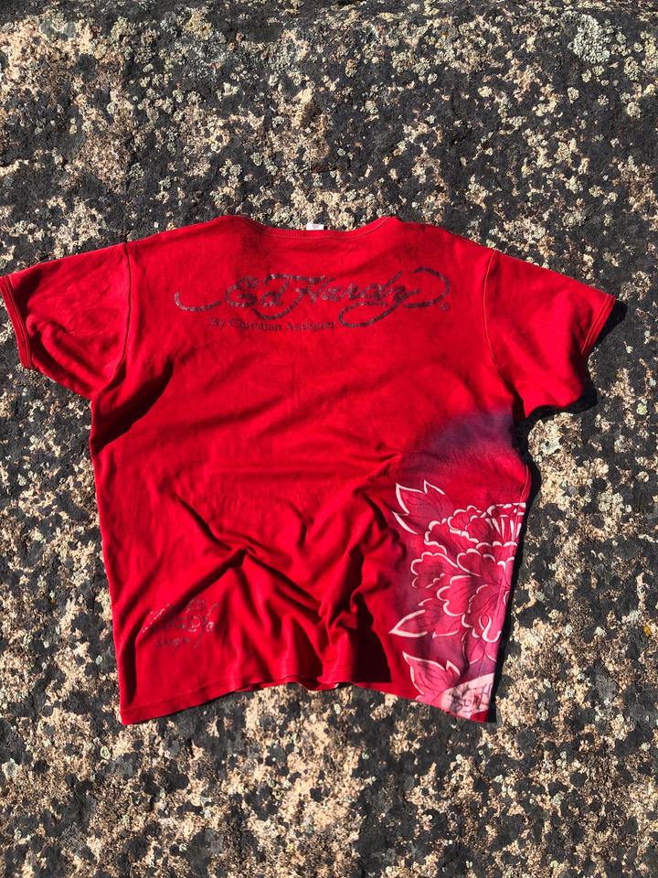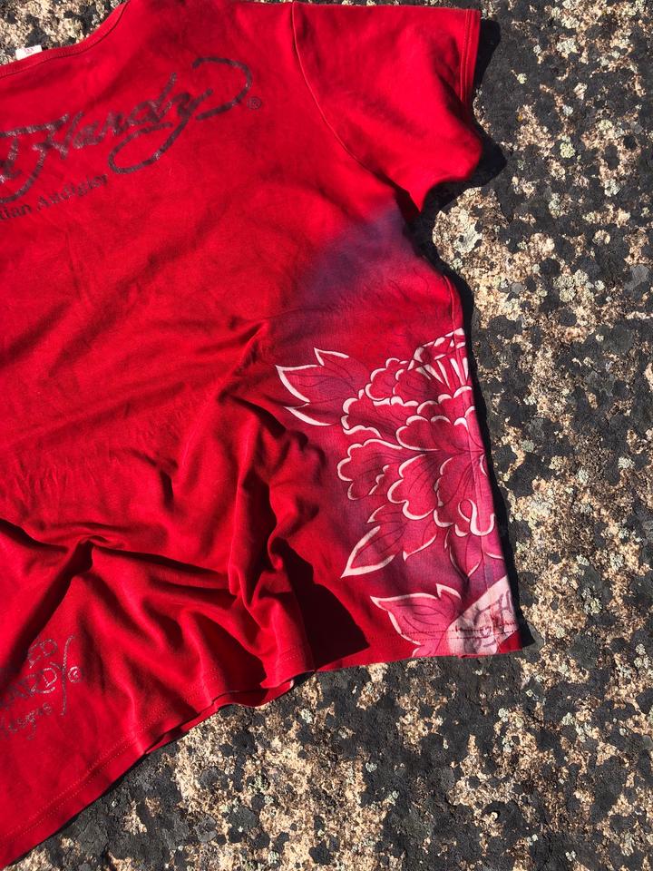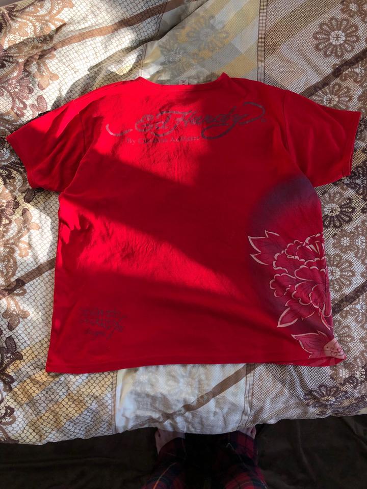 Ed Hardy — классика 2000-х: красная футболка oversize с черепом, орлом и пионами. Размер XL, состояние хорошее (лёгкие следы носки, принт яркий, без дыр/пятен). Культовая вещь для фанатов стиля. 13 500 тг. Артикул: 514187