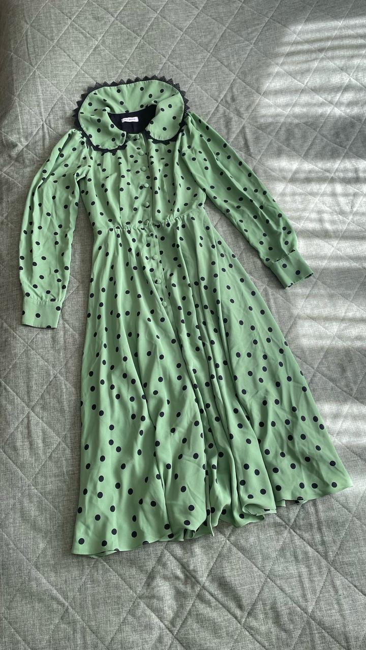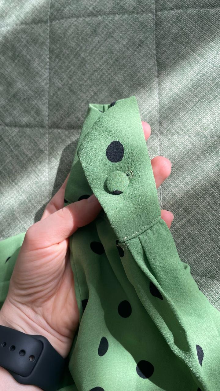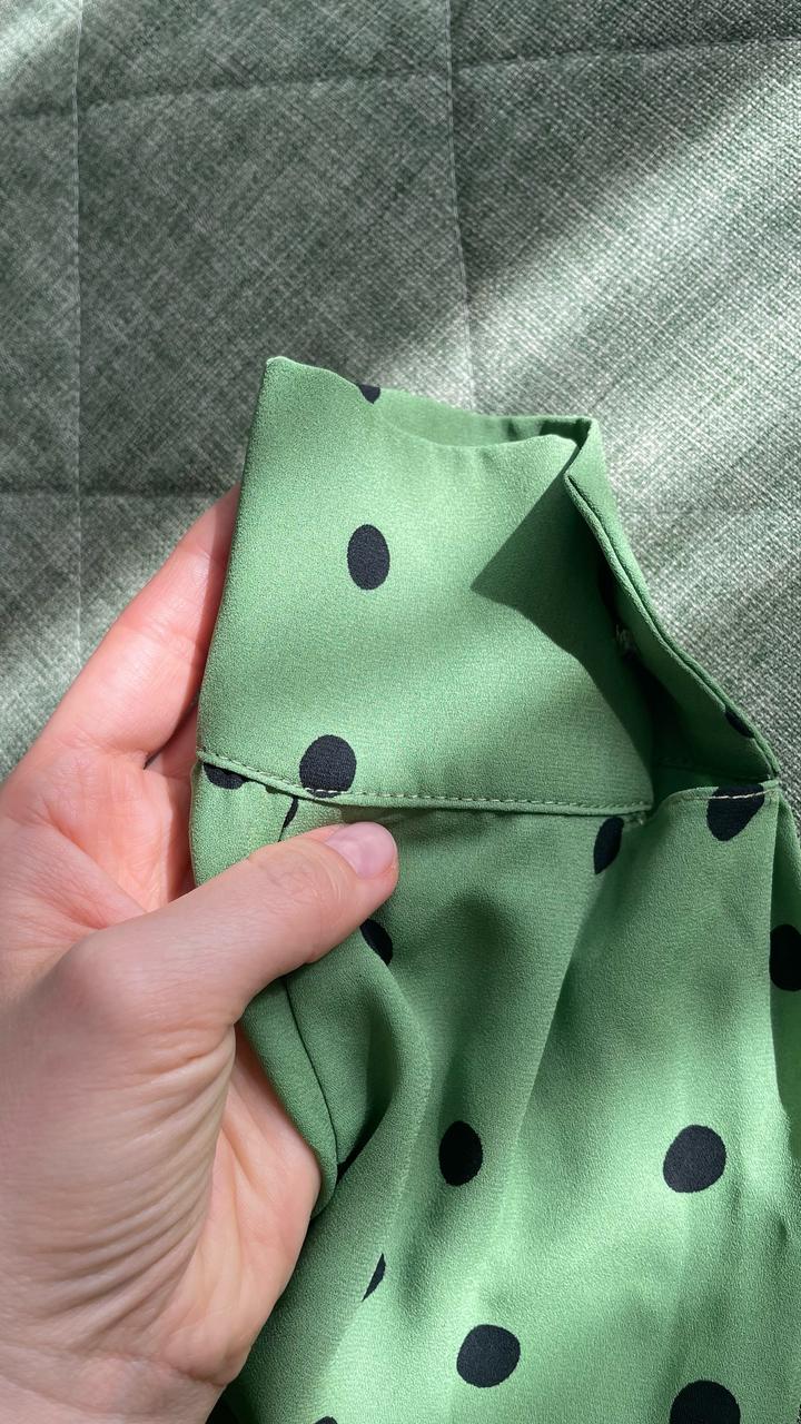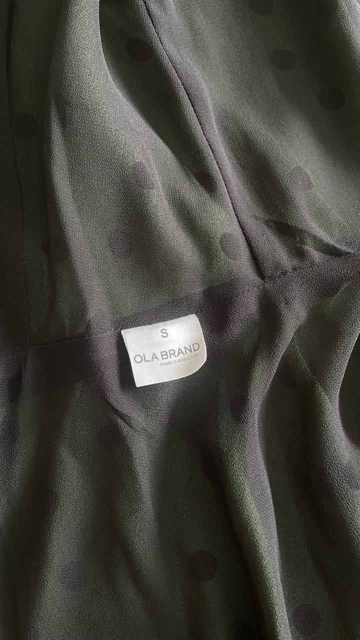 Женское платье в горох OlaBrandKz. Размер S. В длине миди. Цвет приятный травяной, не едкий. Смотрится прекрасно, женственно. Покупала для творческой съемки, в носке не было. Артикул: 514283