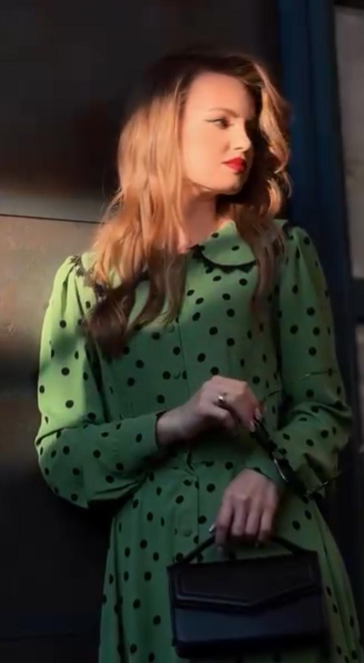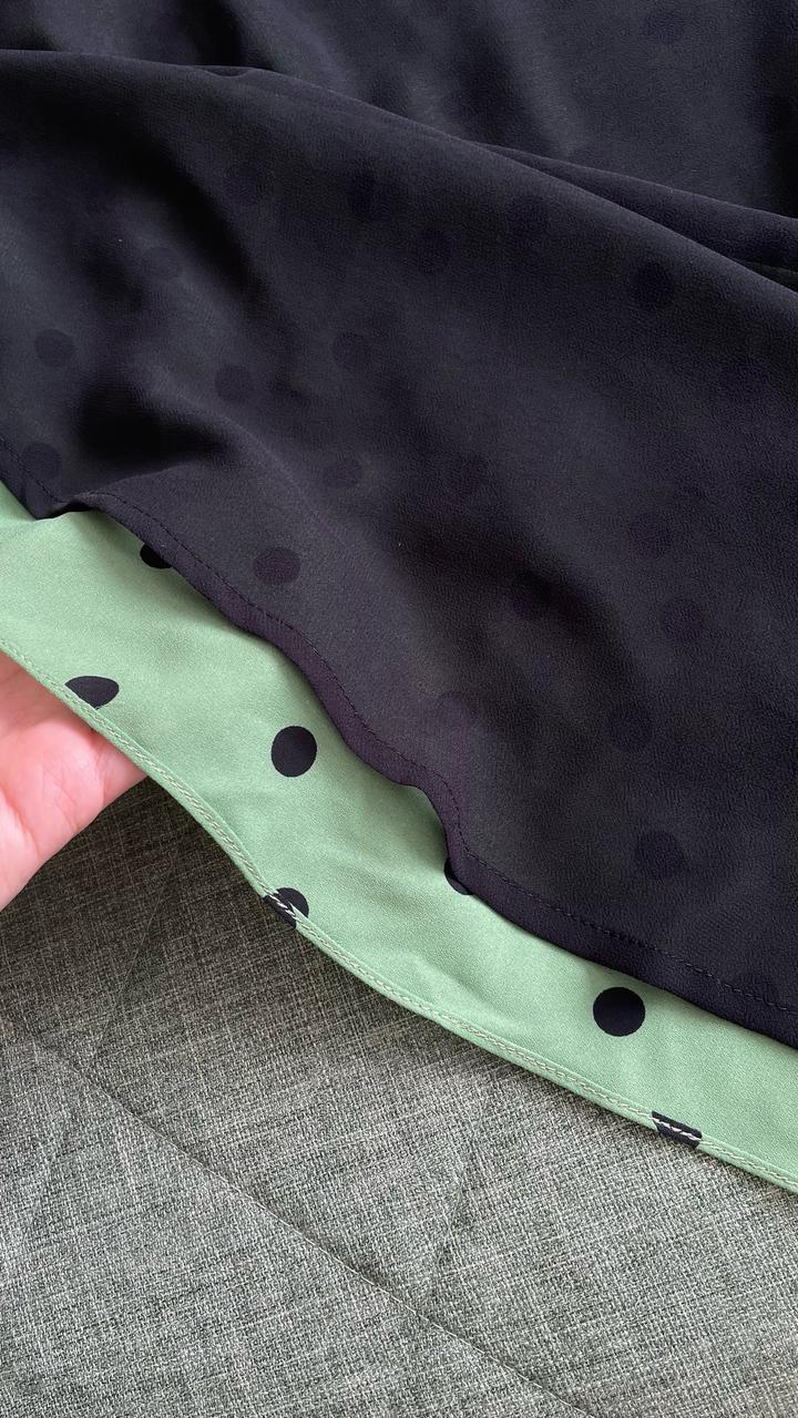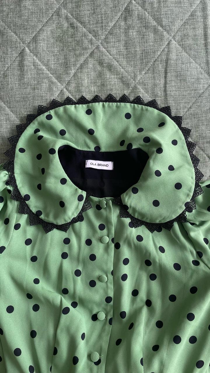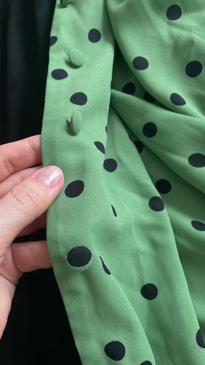 Женское платье в горох OlaBrandKz. Размер S. В длине миди. Цвет приятный травяной, не едкий. Смотрится прекрасно, женственно. Покупала для творческой съемки, в носке не было. Артикул: 514283