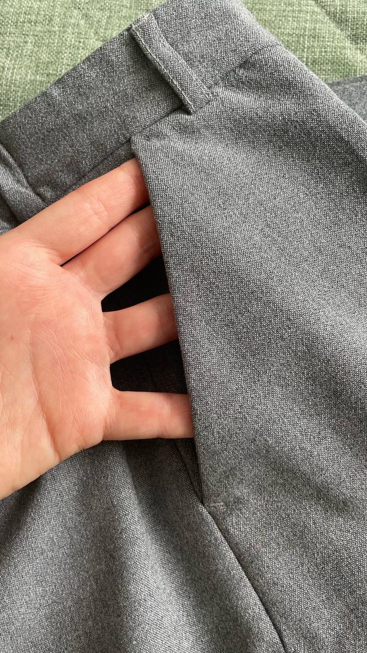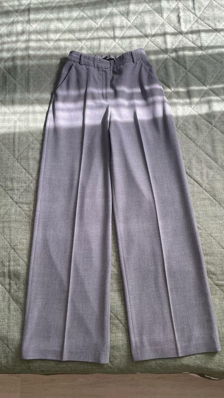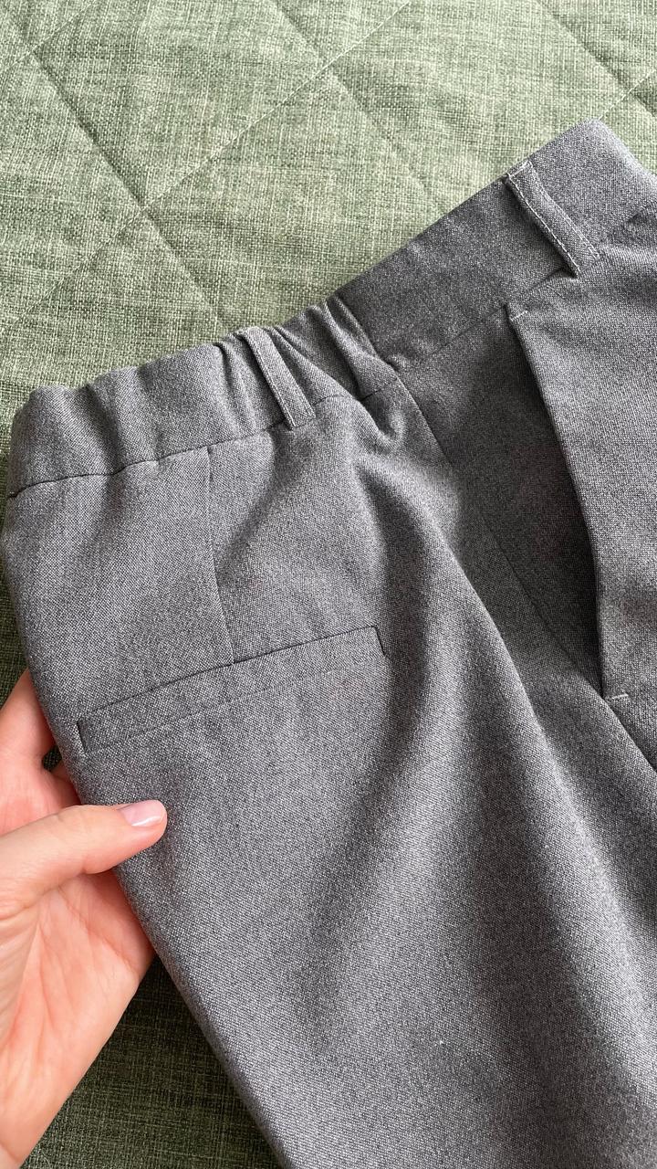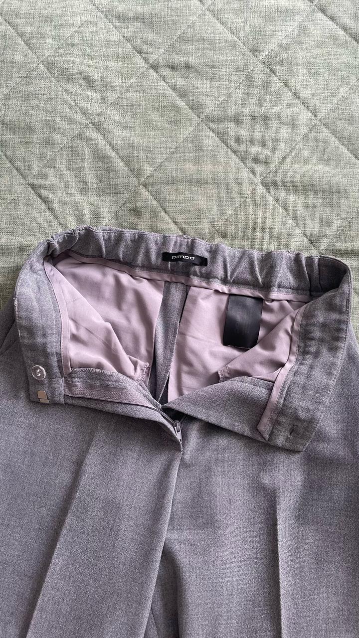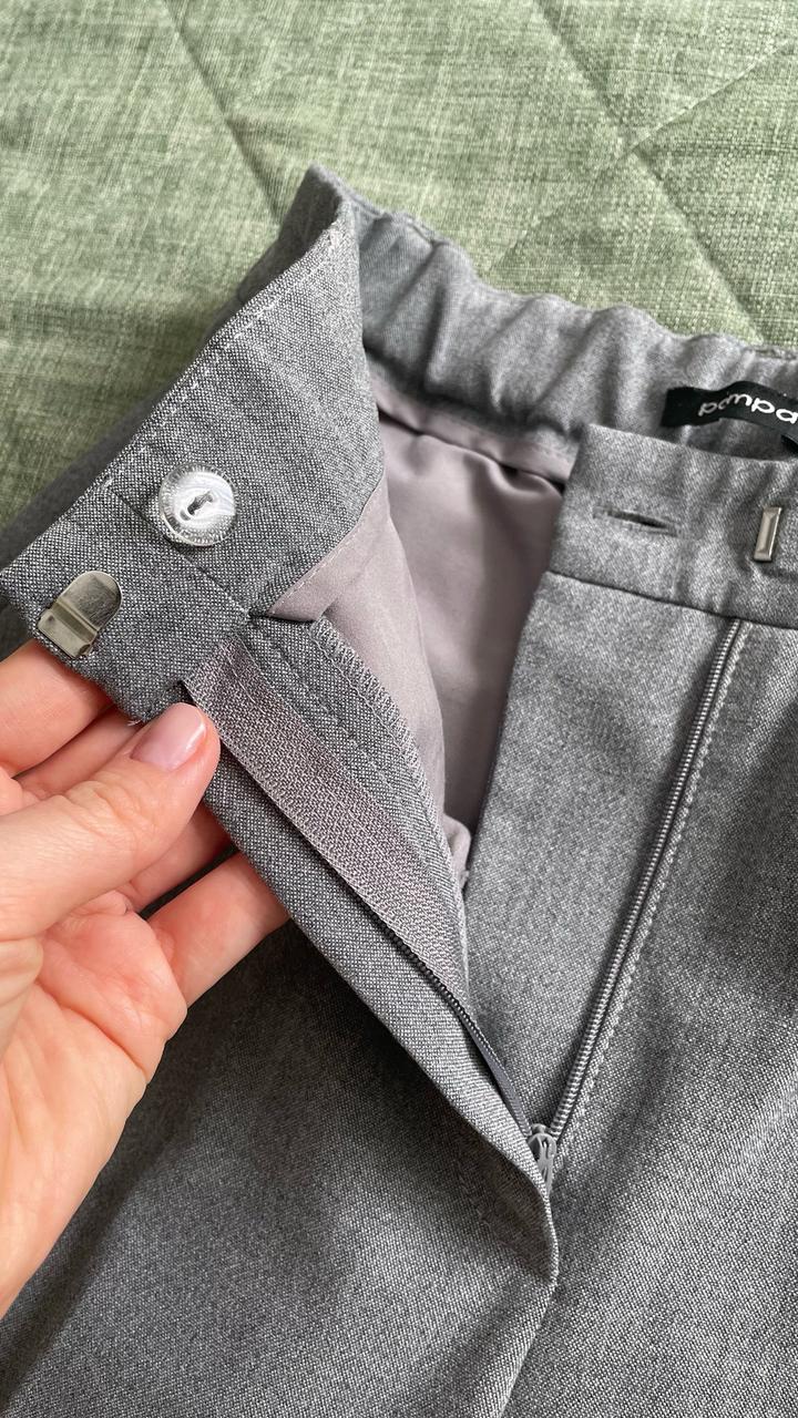 Женские классические брюки от российского бренда Pompa, со стрелками, на высокой посадке. Цвет светло серый, не плотные, вариант на весну-лето. Сзади на резинке. На рост 168 длина будет в пол. Носила несколько раз, как новые. Ткань костюмная. Подойдут на XS-S. Артикул: 514288