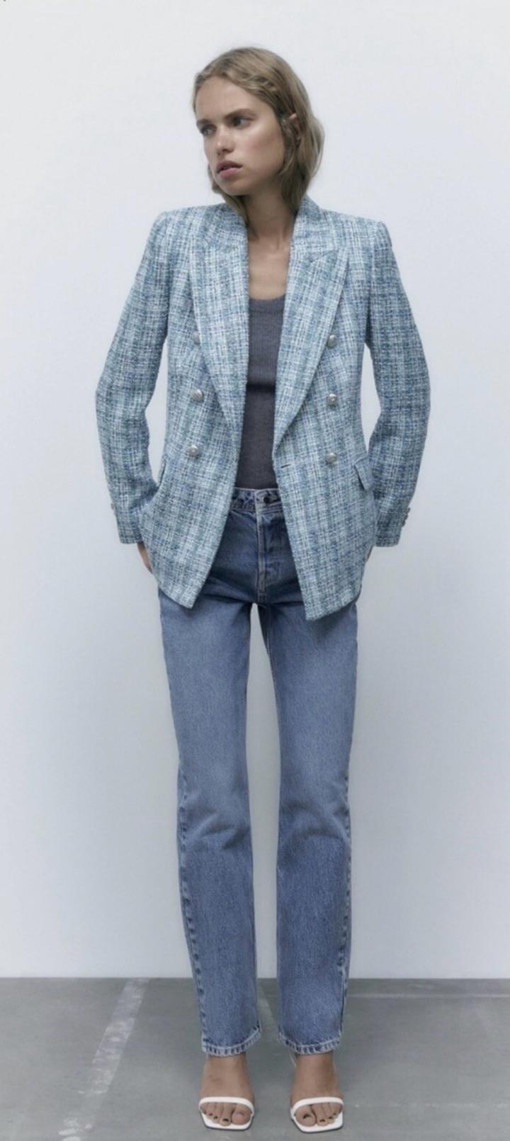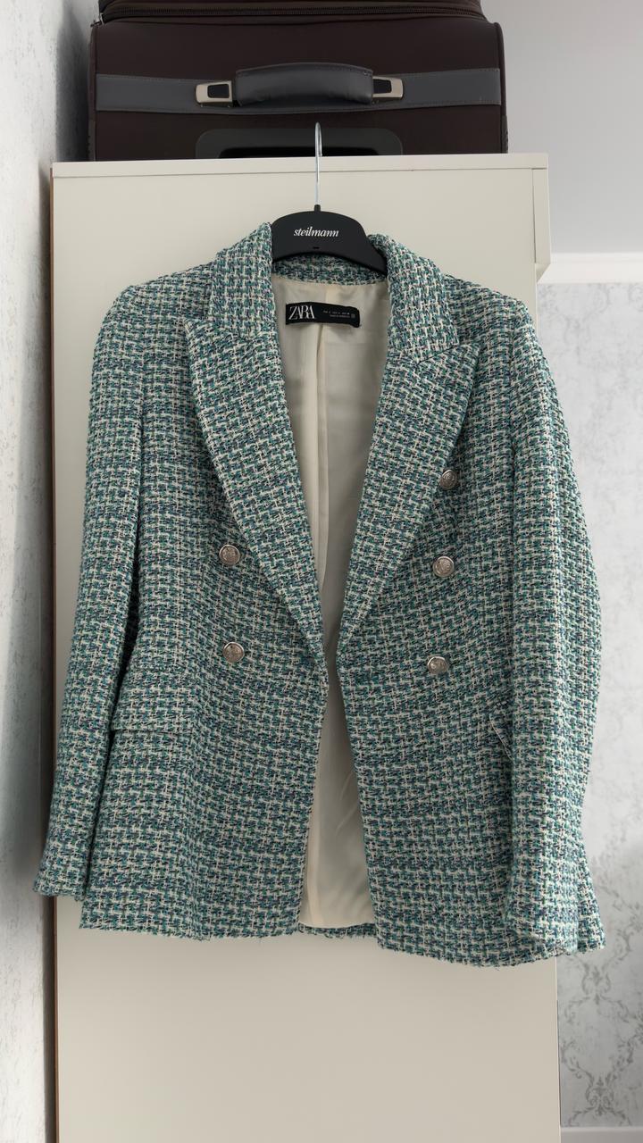 Голубой твидовый пиджак ZaraS