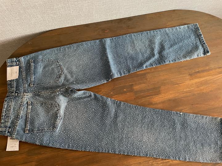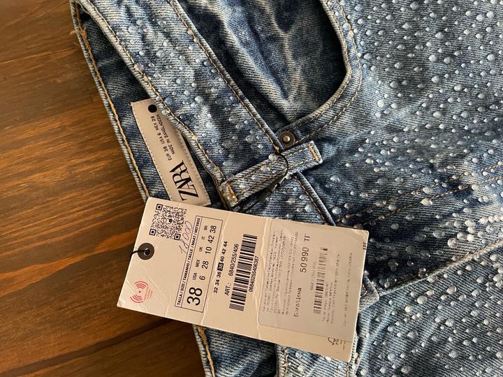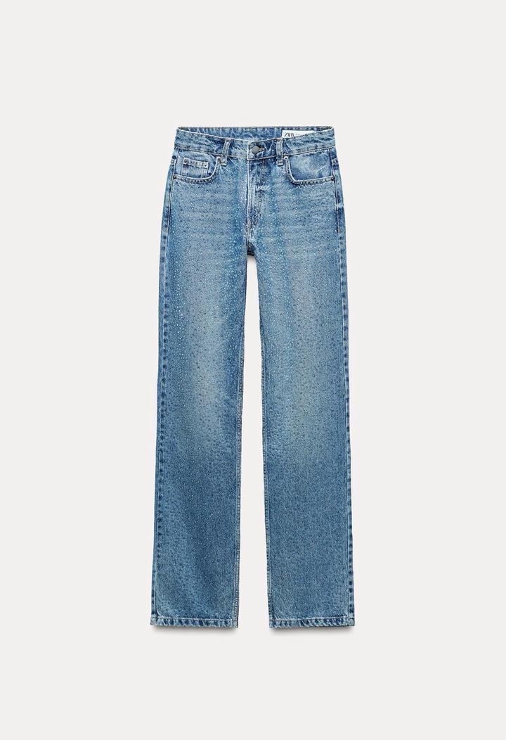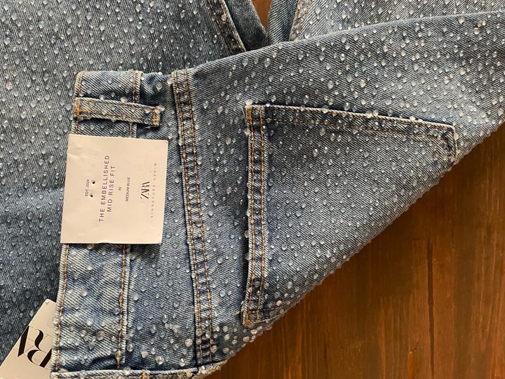Новые джинсы ZARA размер 38 со стильными стразами. Необычные и эффектные, эти джинсы добавят праздничного блеска любому образу. Стразы аккуратно рассыпаны по ткани, создавая лёгкий шикарный акцент — не пайетки, а именно декоративные камешки, которые красиво переливаются. Идеально подходят для вечерних выходов: достаточно надеть базовую кофточку, и образ уже готов — стильно, нарядно и с настроением! Артикул: 514360