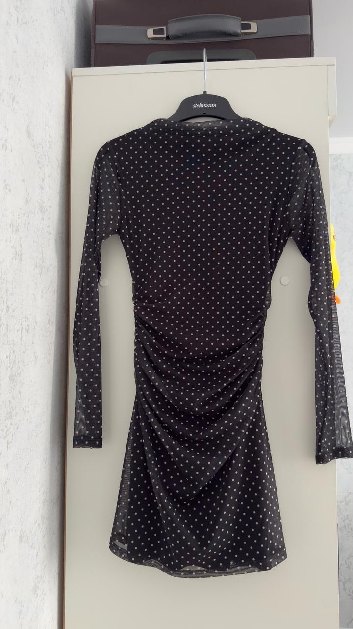 Черное миниплатье в горошек с длинными рукавами, материал сетчатый, имеется подклад Артикул: 514371