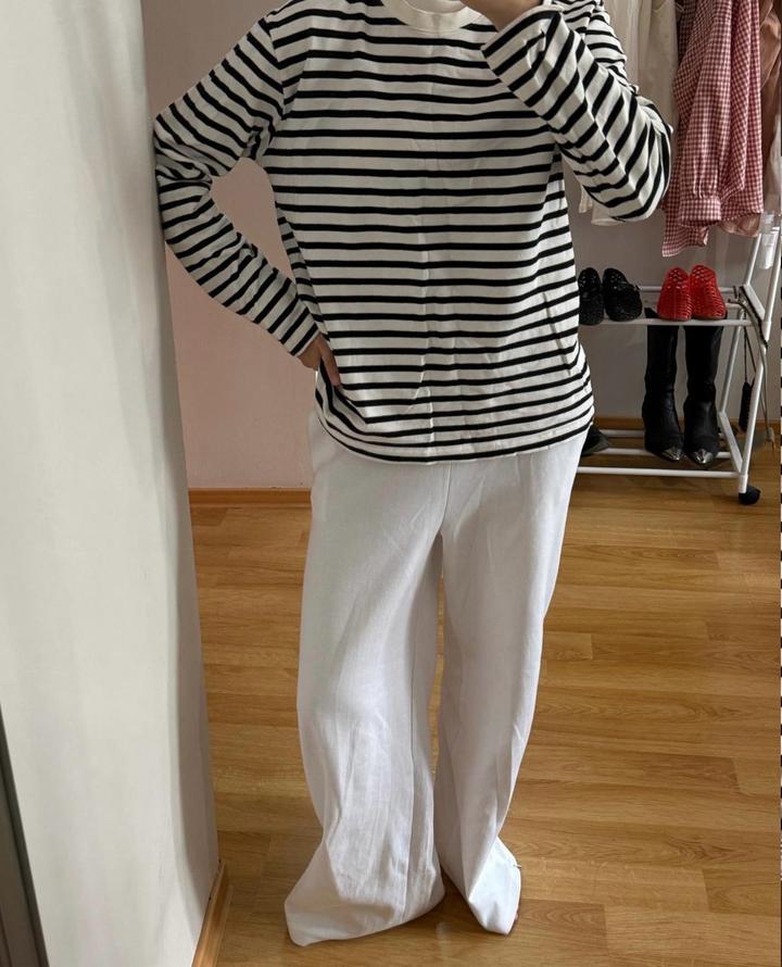 Состояние хорошее. Белый цвет. Чуть расширенные к низу. По бокам внизу брючин есть замочки. Артикул: 514432