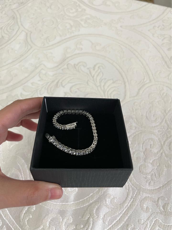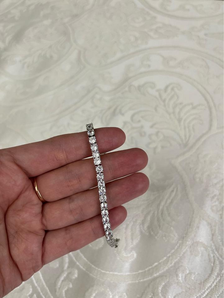 Продаю нежный браслет с камнями моассанит. Очень аккуратный, красивый браслет, камни красиво переливаются на свету, отлично смотрится на руке. • Длина: ~15 см (подойдёт на тонкое, изящное запястье) • Материал: медь с покрытием серебром 925 (напыление) • Состояние: новый, не носился Покупала за 10 000₸, продаю за 7 000₸, просто оказался маловат по размеру. Артикул: 514795