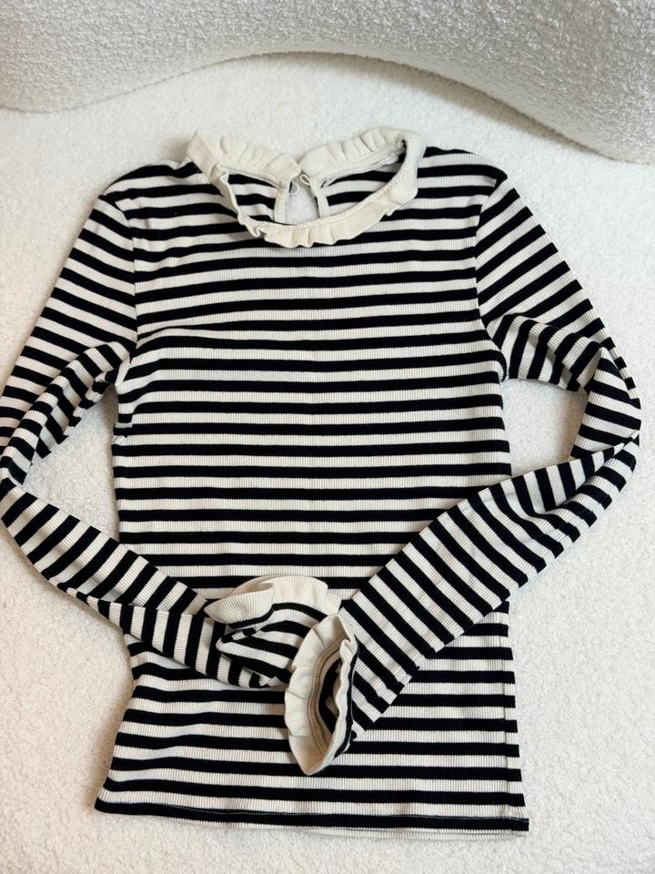 Стильный базовый лонгслив в черно белую полоскуXS