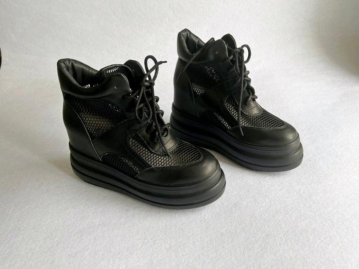 Новые ботинки 38 (245 мм) размер, были куплены в китайском магазине дизайнерской обуви из натур материалов почти за 400 юаней. Платформа в области пятки (скрытая часть+видимая)- 10см, в области носка - 5.5 см. Кожа + сеточка. Сеточка довольно мягкая, подойдут на широкую стопу, в том числе с косточкой. Смотрите другие мои объявления - новые вещи и обувь с зарубежных интернет-магазинов . Артикул: 514985