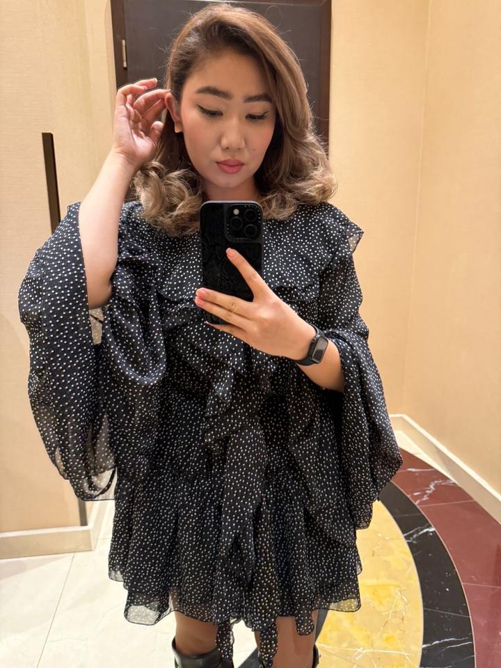 Стильное и лёгкое чёрное платье из шифона 🤍 Свободный крой с красивыми воланами на рукавах, смотрится очень женственно и элегантно. Отлично подойдёт для прогулок, праздников. Артикул: 515100