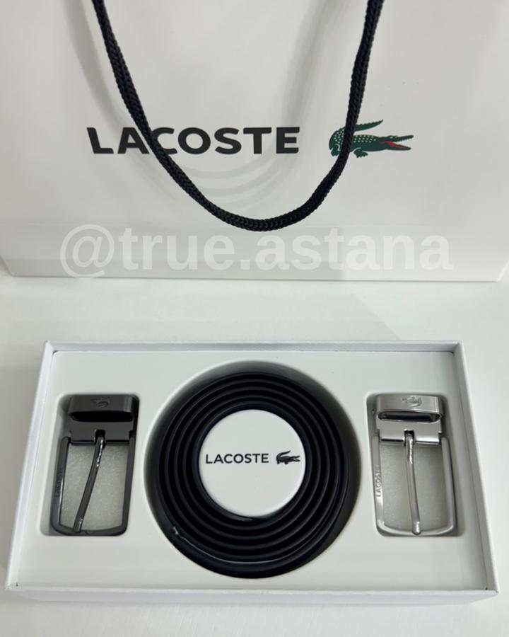 Новый мужской подарочный набор LACOSTE. Двухсторонний ремень, с двумя видами бляшками. Можно отрегулировать размер. Натуральная кожа. Артикул: 515101