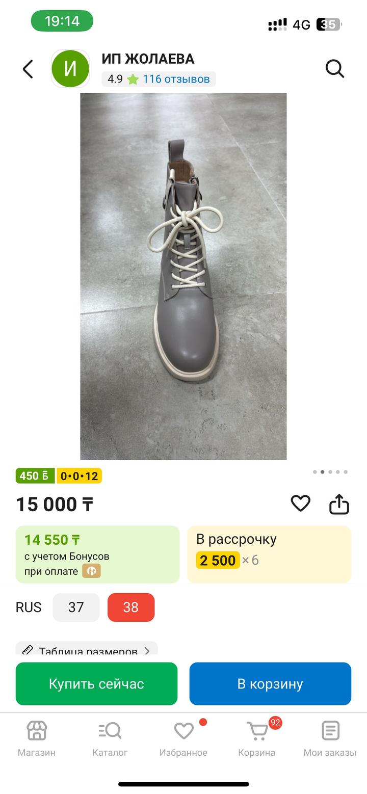 Новая обувь. Покупала на каспи за 15.000. Смотрите еще новые ботинки в профиле, Качества хорошие. Продам за пол цены. Артикул: 515389