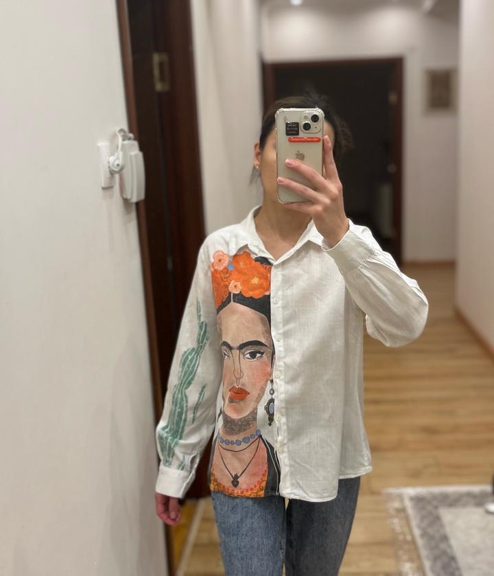 Уникальная рубашка с изображением Фриды, европейский бренд, 80% хлопок, размер S. Артикул: 515434
