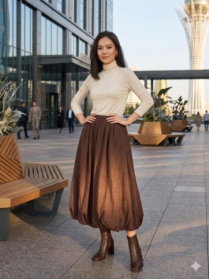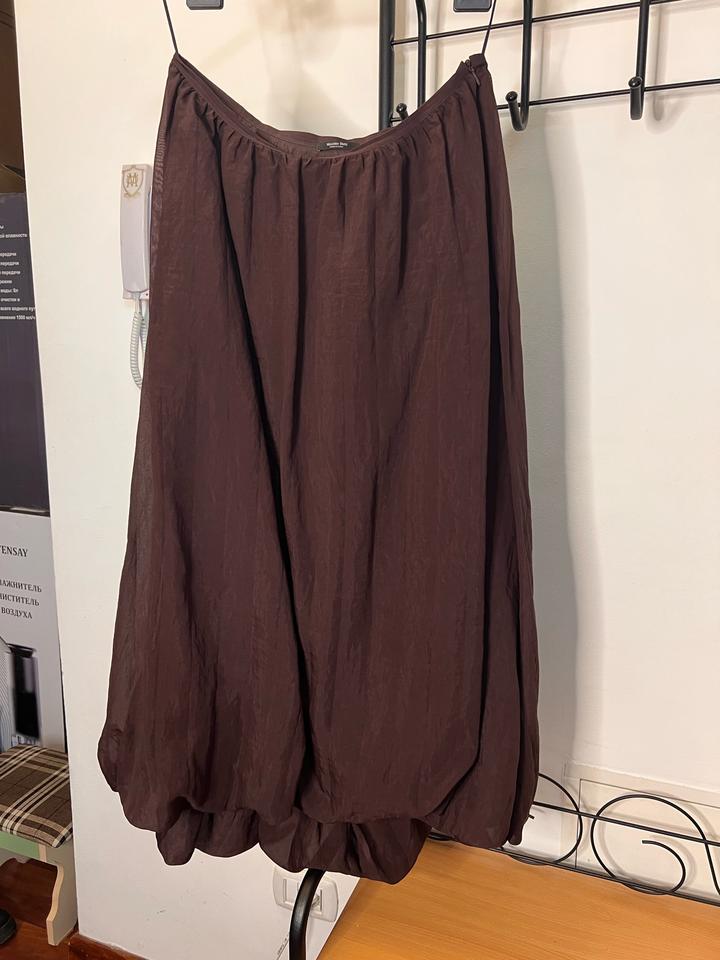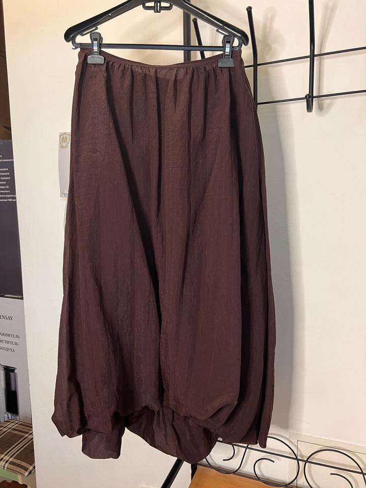 Стильная юбка от Massimo Dutti в благородном темно-бордовом оттенке 🤎 Лёгкая, струящаяся ткань красиво держит форму и создаёт объёмный силуэт «баллон», который выглядит дорого и современно. Высокая посадка подчёркивает талию, а универсальный цвет легко сочетается с базовым гардеробом — от водолазок до рубашек. Идеально подойдёт как для повседневных образов, так и для более элегантных выходов. Состояние отличное 👌 Артикул: 515573