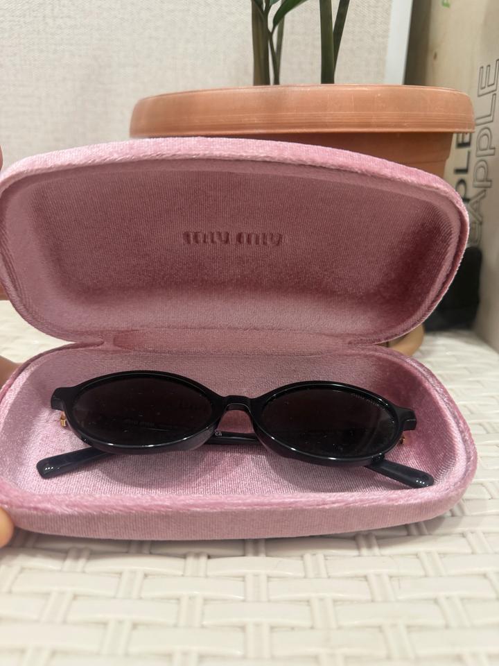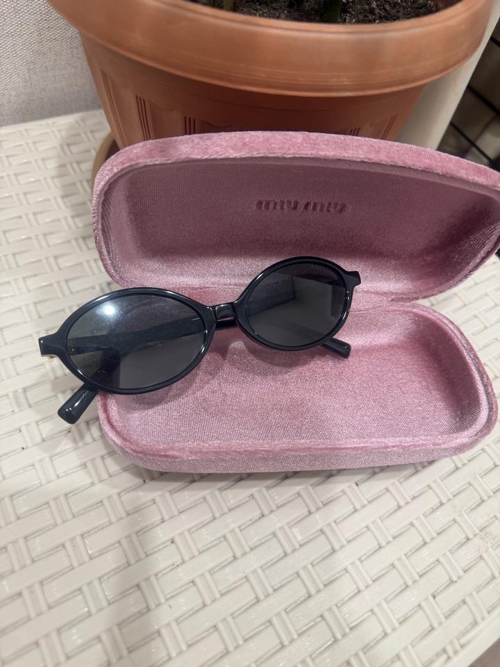Солнцезащитные очки MIU MIU Стильные чёрные очки в круглой оправе. Очень лёгкие, удобные и аккуратно смотрятся на лице. В комплекте оригинальный бархатный чехол MIU MIU. Артикул: 515581