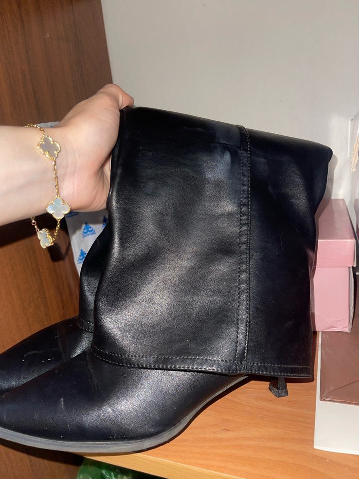 Те самые трендовые сапоги трубы, подходит и на 39р и на 40р, очень классно можно с образами сочетать, до колен, не носились ни разу Артикул: 515636