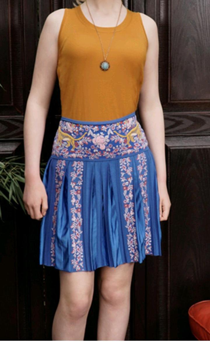 sz 38 ROBERTO CAVALLI синий TIGER цветочный жаккард плиссированная Summer юбка, в идеале Артикул: 515648