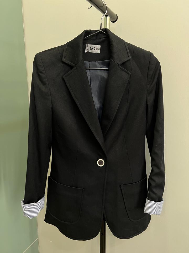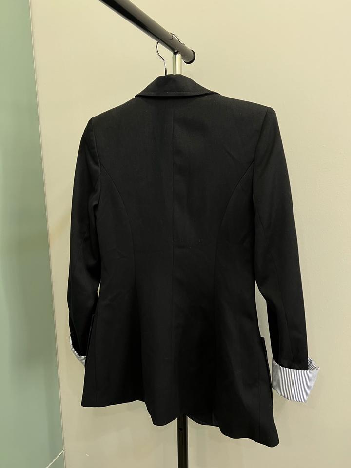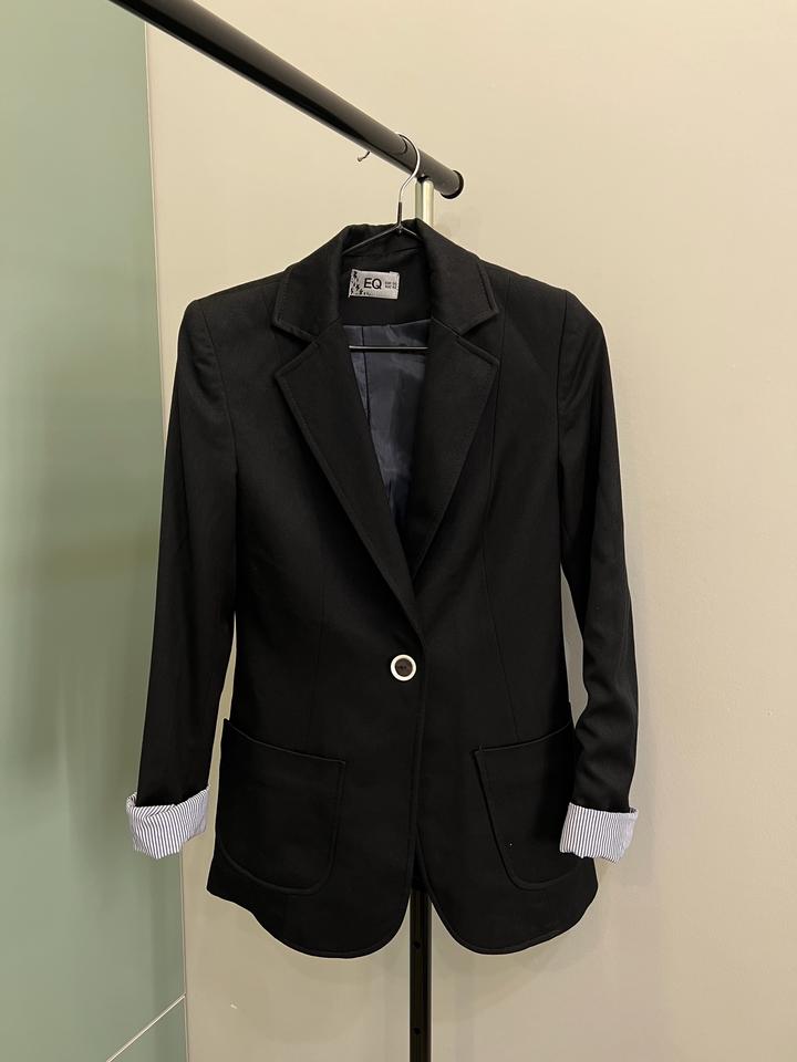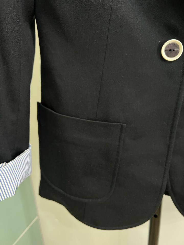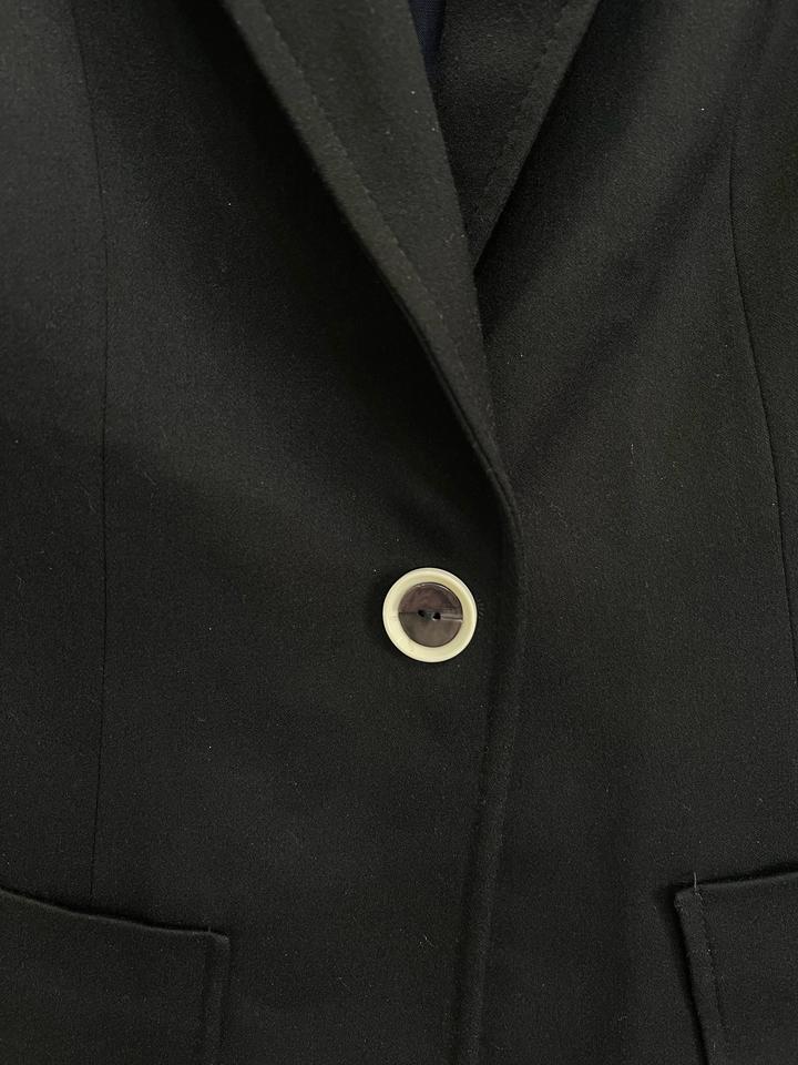 Темно-синий пиджак приталенный на одной пуговице, рабочая. Длина до бедер. Артикул: 515817