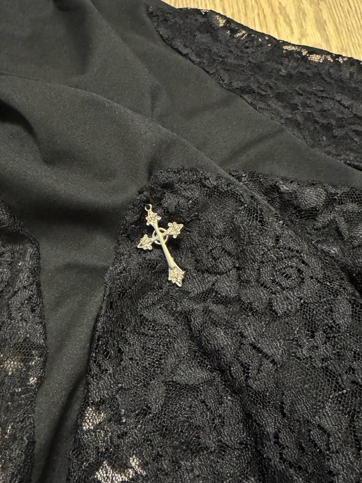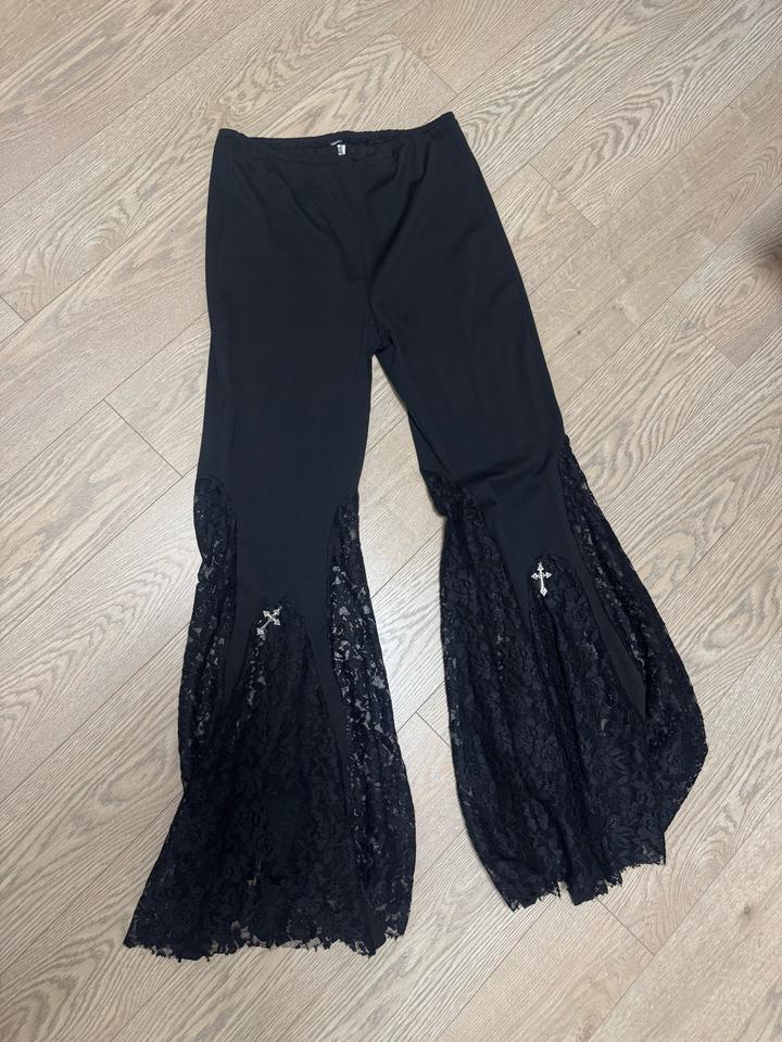 Черные готические леггинсы клеш с кружевом и фурнитурой в виде крестов Артикул: 515845