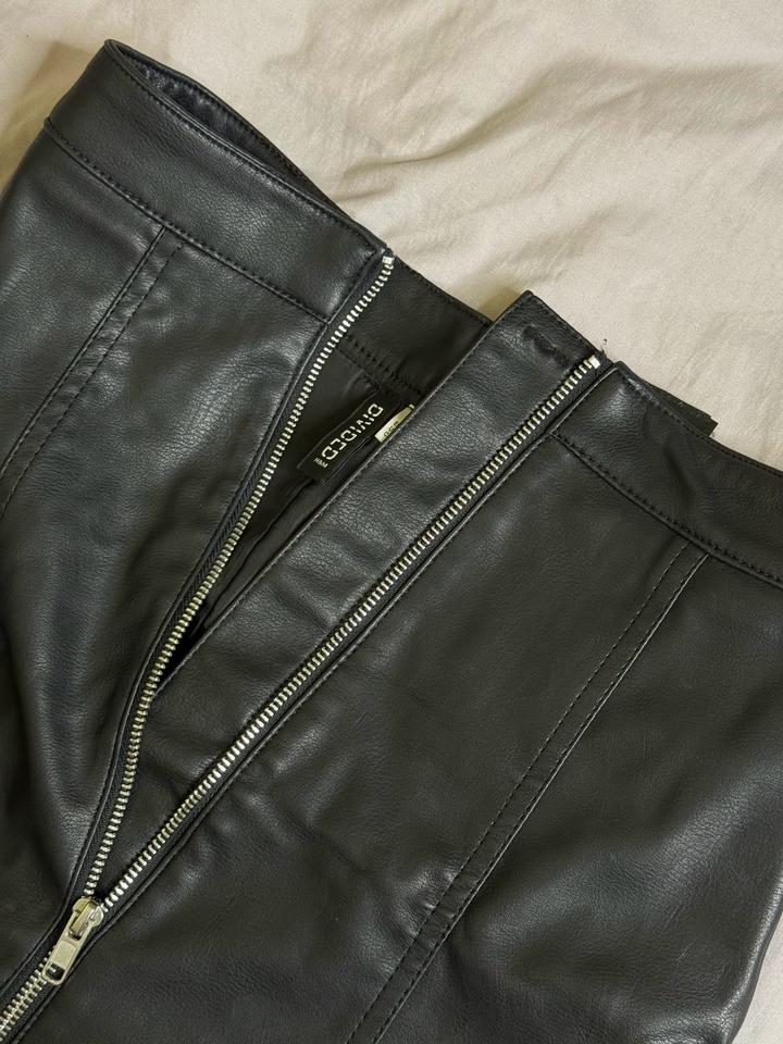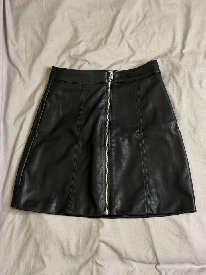 Черная кожаная юбка с замком H&MS/M