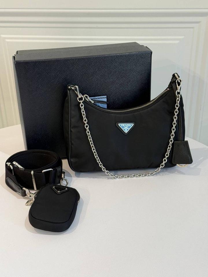 Prada Re-edition 2005 Сумка выполнена из нейлона, созданного из выловленного в океане пластика, что делает покупателей сопричастными к движению по спасению мировых вод от отходов♻️ В комплекте имеется съемная ручка-цепочка, и плечевой ремень с футляром. Состояние: отличное *у данного товара полный комплект бутика: пакет, коробка, пыльник и документы Цена бутика: 1.364.000 тг Артикул: 515879