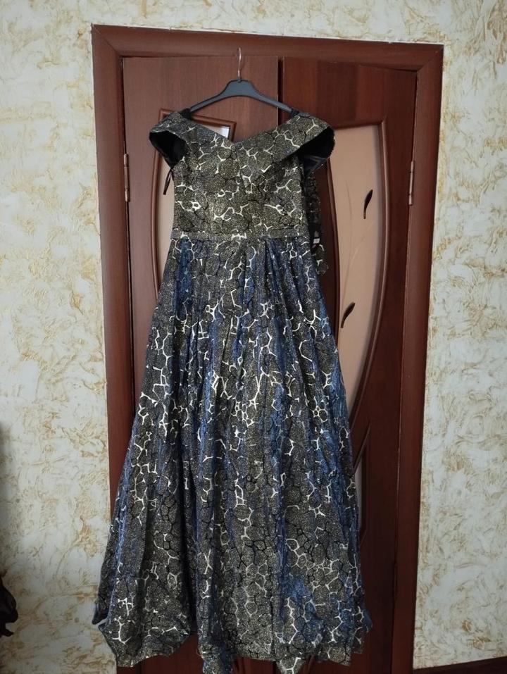 Вечерняя классика, винтажный стиль. Величественное платье из плотной жаккардовой ткани с уникальным «чешуйчатым» принтом в золотисто-черных тонах. Вырез «анжелика» (открытые плечи) придает образу аристократизм. Плотная ткань отлично держит форму юбки в пол, создавая силуэт <песочные часы>Идеально для торжественных приемов и юбилеев. Артикул: 515975